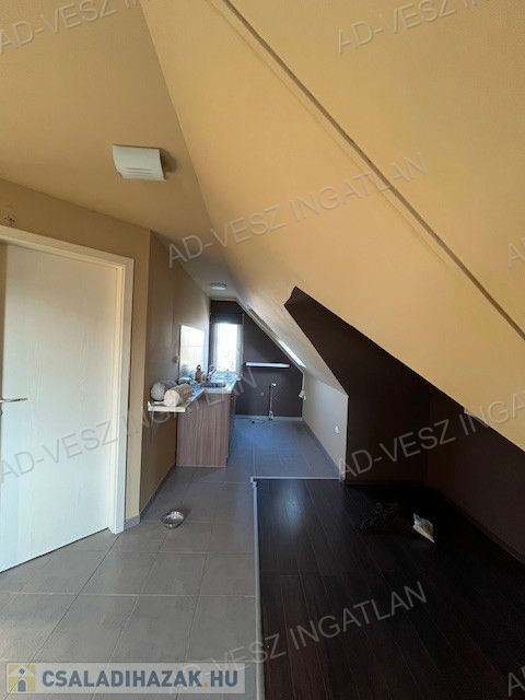 A másik ingatlan 2004-ben ytongból épült, műanyag nyílászárókkal. Az alsó szinten egy légterű helyiség, raktár, fürdőszoba wc-vel, külön vendég wc, az emeleten szintén egy légterű helyiség, mini konyhával, fürdőszobával, wc-vel került kialakításra.
