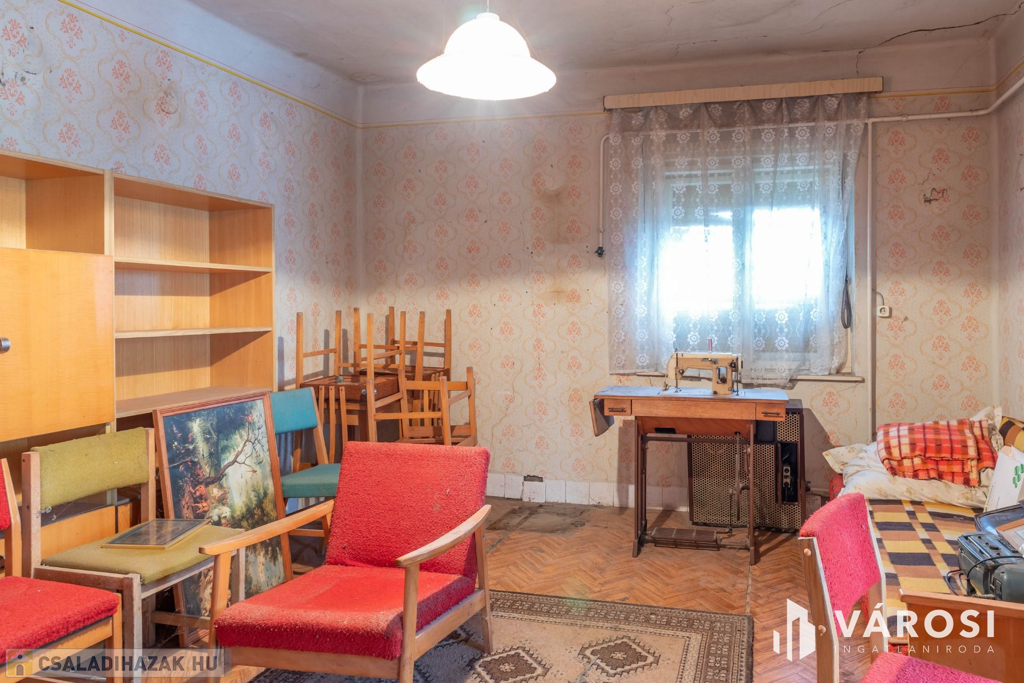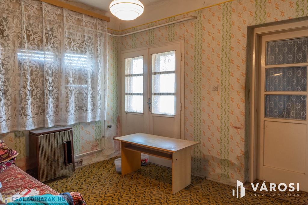 Eladásra kínálom Újkígyós csendes utcájában található 80 m2 hasznos alapterületű vegyes falazatú 2 szobás családi házat, mely felújítást és korszerűsítést igényel. Az ingatlan helyiségei részben szilárd burkolatúak, tetőszerkezete jó állapotú, környezet rendezett. A ház fűtését konvektorok biztosítják, valamint az egyik szobában egy cserépkályha is megtalálható, meleg víz ellátását villanybojler szolgáltatja.
