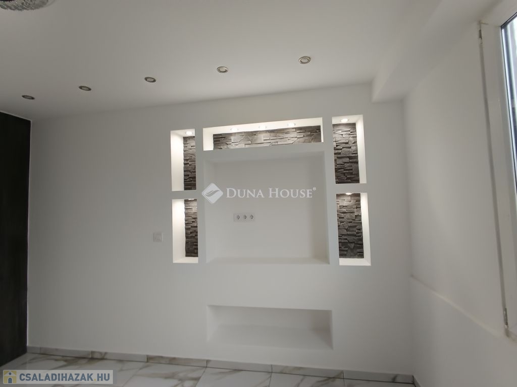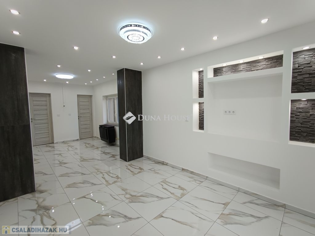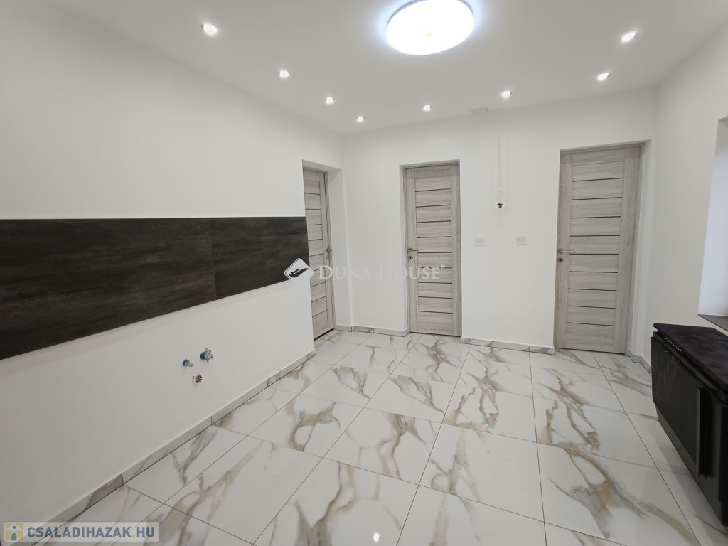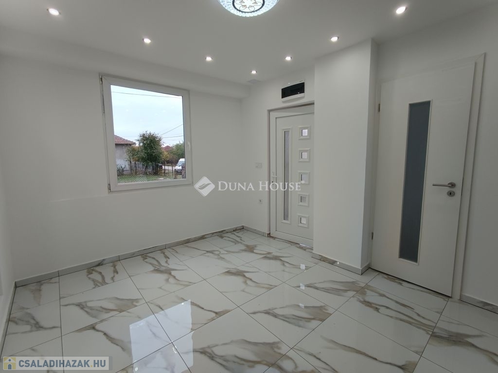 Újszász vasútállomás közelében 2 szoba + nappali amerikai konyhás 62nm-es ház eladó!Az épület vegyes falazatú fa tetőszerkezettel és cserép fedéssel.Teljes körű felújításon esett át:Új vakolás,glettelés,festésÚj réz villanyvezetékekÚj vízhálózatÚj design laminált , és járólapokÚj külső vakolás,és hálózásÚj hőszigetelt nyílászárók,és beltéri ajtókÚj zuhanyzó és szaniterekFűtése gázkonvektorokkal megoldott, melegvíz ellátása villanybojlerrel.A helyiségek tekintetében kialakításra került 2 külön bejáratú szoba,fürdő+WC, Amerikai konyha+nappali,mosókonyhaUdvara rendezett rajta egy 50 nm-es melléképület is helyet kapott.Elhelyezkedését tekintve tökéletes Újszászon a vasútállomás közelében helyezkedik el!Óvoda, iskola, élelmiszer bolt, orvosi rendelő, gyógyszertár, vasútállomás minden sétatávolságon belül elérhető!Tömegközlekedése is kiváló, vonattal Budapest 1 óra alatt , Nagykáta és Szolnok is 20 percen belül megközelíthető.Újszász Pest megye hátárán helyezkedik el ,az M4-es autópályától csak pár km-re Az ingatlan per teher és igénymentes azonnal költözhető.A Duna House teljes kínálatával kapcsolatban forduljon hozzám bizalommal!Ingyenes hitelügyintézés garantáltan a legjobb feltételekkel és a leggyorsabban.Eladás és vétel teljes körű ügyintézése, ingyenes tanácsadás, értékbecslés, megbízható ügyvédi háttér biztosítása.Amennyiben megtetszett önnek az ingatlan várom megtisztelő hívását a hét bármely napján akár hétvégén is!