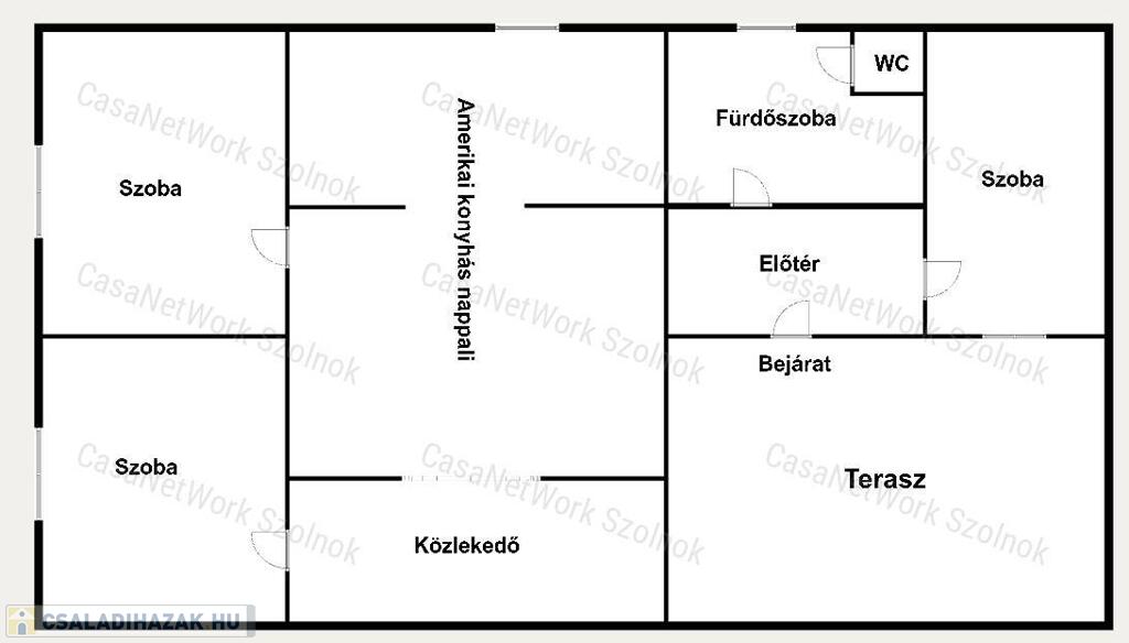 - előtér, amerikai konyhás nappali ,három nagy szoba, fürdőszoba + WC