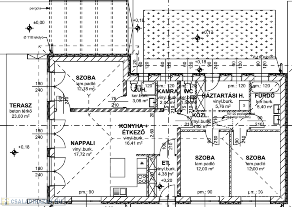 A ház átadáskori készültségi szintje a következőket tartalmazza:
