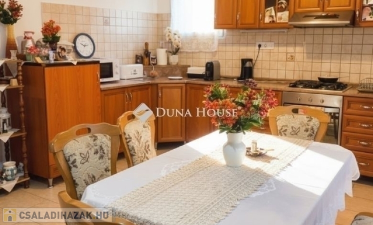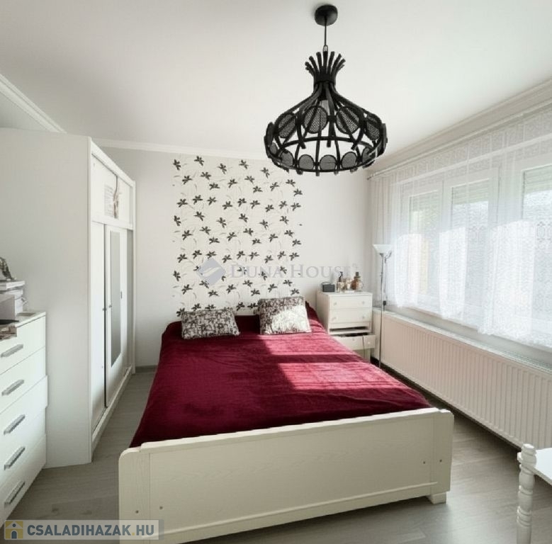 Eladó, felújított, kétgenerációs családi ház Üllőn, csendes kertvárosi környezetben! Üllő, 2225 - Központhoz közel, csendes utcábanTelekterület: 432 m²Hasznos alapterület: Összesen 161 m² + 39,5 m² padlástér + 24 m² melléképület + 27 m² garázsÉpítés éve: 1980-1981Felújítás éve: 2022Energetikai besorolás: B A ház kétszintes (+ pince), két önálló, teljesen elkülöníthető lakrészből áll, így ideális választás többgenerációs családok, összeköltözők vagy befektetők számára.A két lakrész közös mérőórákkal rendelkezik, de igény esetén könnyen szétválasztható.Az ingatlan klimatizált, kamerarendszerrel felszerelt, műanyag, redőnyözött nyílászárókkal és 10 cm Dryvit hőszigeteléssel ellátott. A fűtést és a meleg vizet korszerű gázcirkó biztosítja, amelyet 2022-ben cseréltek. A villany-, víz- és csatornahálózat teljes felújítása 2017-ben történt.A fűtési költség mindkét lakásra együtt átlagosan 25.000 Ft/hó. Földszint (92 m²):Nappali: 29 m² + 8,9 m² teraszHálószoba: 17 m² + 6,4 m² teraszAmerikai konyhás étkező: 20 m²Fürdőszoba, WC: 6,9 m²Előtér: 3,5 m²Közvetlen kijárat a fedett teraszra 16,1 m² és a kertbeA helyiségek világosak, jól szellőztethetők, minden ablakos, redőnnyel ellátott Emelet (53 m²):Tágas szoba: 27 m² (igény szerint kettéosztható) + Erkély 4 m²Nagy konyha: 13 m² (innen kijárat a 11 m²-es Fedett teraszra és az udvarra vezető külső lépcsősorhoz)Fürdőszoba: 1,5 m²WC: 1,5 m²Előszoba: 3 m²Pince (16 m²) Műszaki állapot és felújítások:A közművek cserélve: 2017Új fűtésrendszer, kombi gázcirkó: 2022Lindab tetőfedésÚj burkolatok és réz elektromos vezetékek10 cm homlokzati hőszigetelésMűanyag, redőnyös nyílászárókKlíma és kamerarendszer Udvar, melléképület és garázs:A rendezett, parkosított udvaron két funkcionális épület található:24 m²-es, szigetelt melléképület, amerikai konyhával, fürdőszobával, villanybojlerrel vendégházként is használható27 m²-es garázsÁsott kút a kert locsolásához Közlekedés és elhelyezkedés:Az ingatlan Üllő egyik csendes, nyugodt utcájában található, kiváló infrastruktúrával.Vasútállomás: Kőbánya-Kispest 21 perc alatt elérhetőAutóbuszjáratok szintén kb. fél óránként indulnak, 30 perc alatt Budapestre érkeznekEz a kétszintes, kétlakásos családi ház kiváló műszaki állapotban van, rendezett tulajdonviszonyokkal, felújított közművekkel, klímával, kamerarendszerrel és alacsony fenntartási költséggel.A külön bejáratú lakrészek és a több melléképület miatt ideális többgenerációs családoknak, vállalkozóknak, befektetőknek vagy akár kiadásra is.