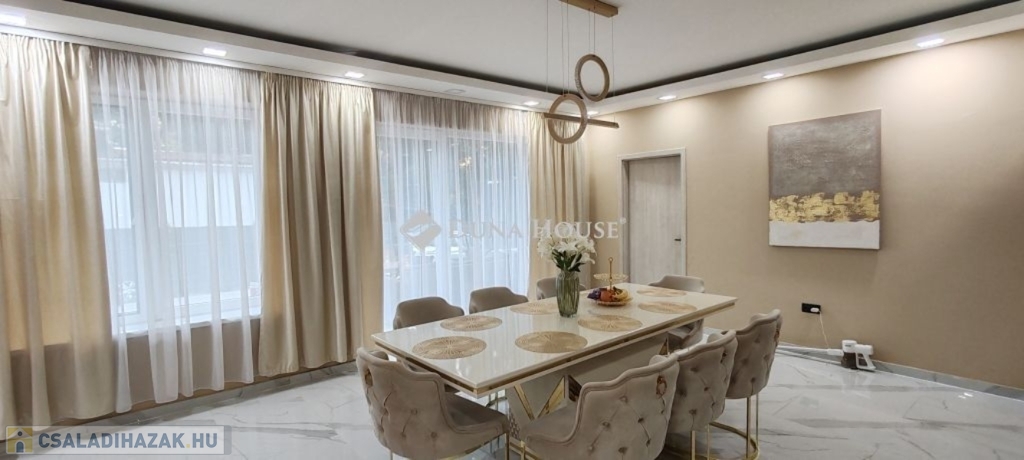 Eladó teljeskörűen felújított álomotthon Üllőn!Üllő egyik legkedveltebb, családi házas övezetében, 712 m²-es, parkosított telken kínálunk megvételre egy 3 szobás + hatalmas amerikai konyhás nappalis, 2024-ben teljeskörűen felújított családi házat!A felújítás során az alábbi munkák történtek meg:Új tetőszerkezet és héjazatMűanyag nyílászárók beépítése redőnnyel, szúnyoghálóvalKülső szigetelés és új homlokzati színezésModern burkolatok minden helyiségbenTeljes villamos- és vízhálózat csereKorszerű, energiahatékony fűtésrendszer kialakításaA ház elosztása ideális:3 különnyíló szobaTágas, világos nappaliÉtkezős, gépesített konyhaKényelmes fürdőszoba és WCNagyméretű teraszA parkosított kert és terasz kiváló helyszín családi és baráti összejövetelekhez, a kocsibeálló elektromos kapun keresztül közelíthető meg.Az ingatlan tehermentes, azonnal költözhető.Tökéletes választás azoknak, akik:Szeretnének a fővároshoz közel, zöld környezetben élni, fontos számukra a minőségi kivitelezés és modern műszaki állapot.Nem szeretnének felújítással bajlódni csak beköltözni és élvezni az otthont!Ne maradjon le erről a kivételes lehetőségről!Jöjjön el, nézze meg, és szeressen bele!