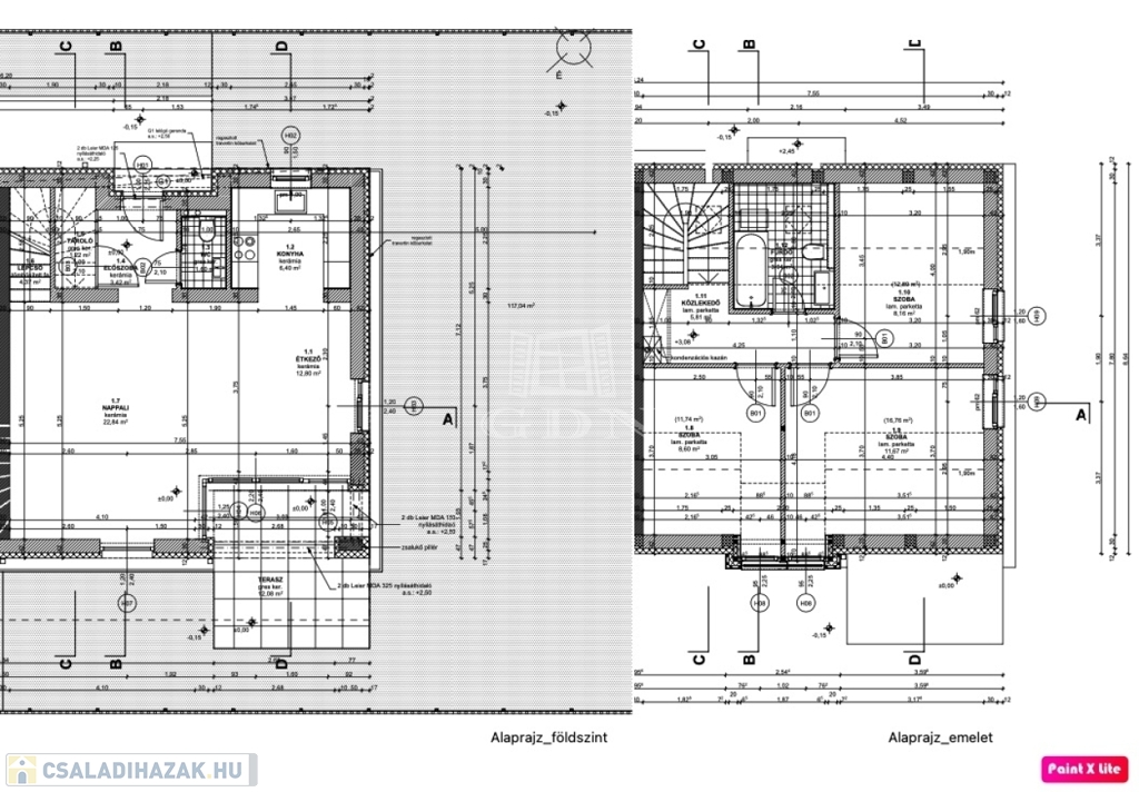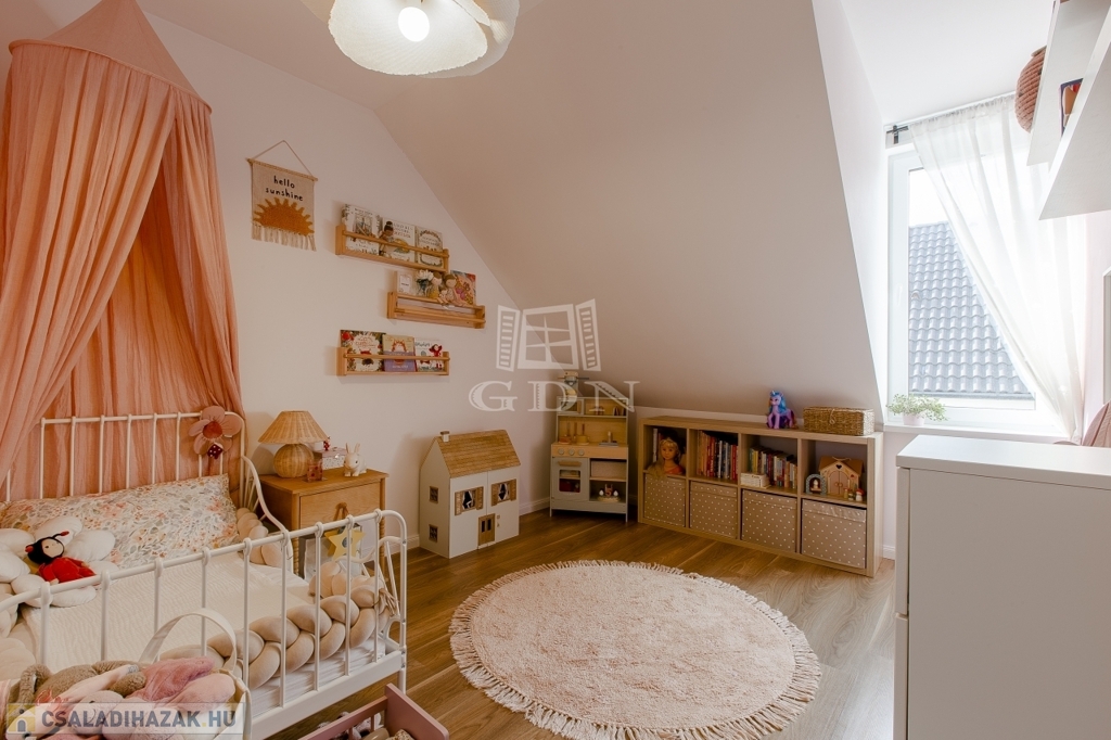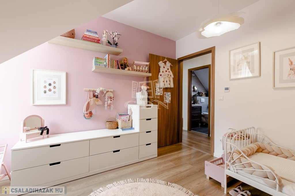 Az emeleten három teljes értékű külön nyíló szoba és egy kádas fürdőszoba lett kialakítva.