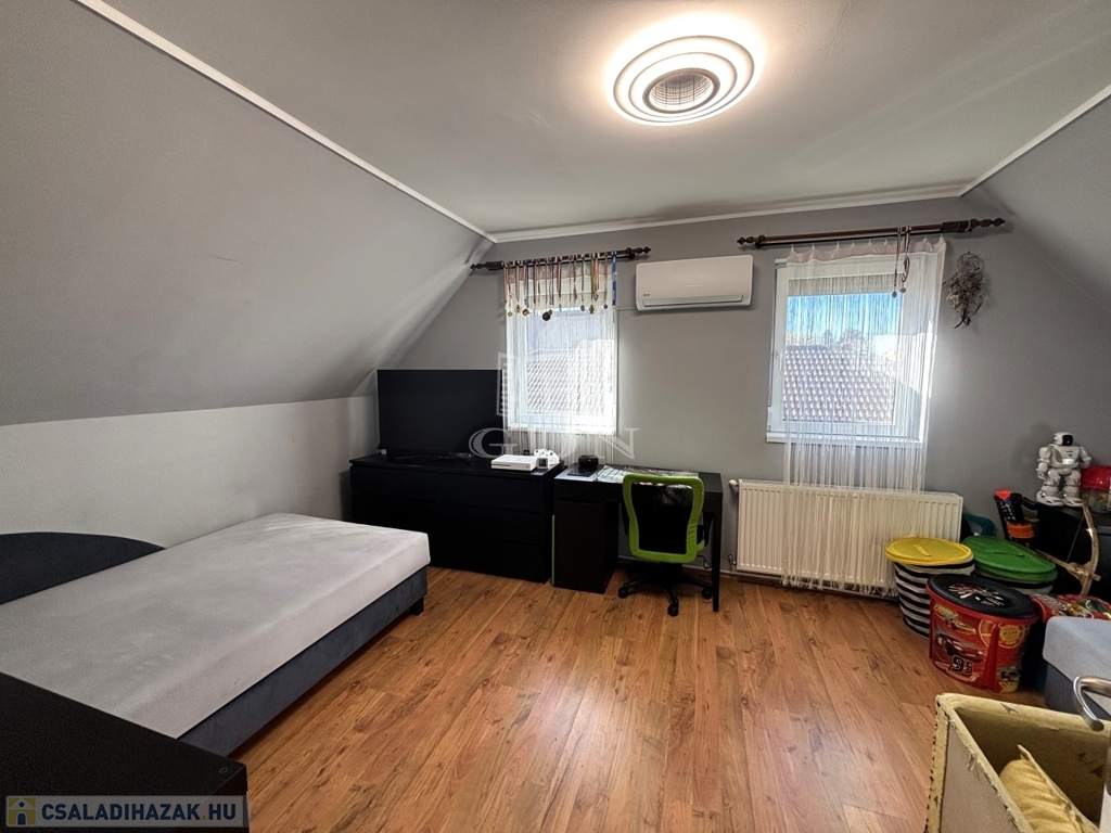 A ház elhelyezkedése és kialakítása NAGYCSALÁDOSOKNAK IS ALKALMAS, a terek JÓL ÁTGONDOLT elrendezésűek, szintenként külön FÜRDŐ és WC szolgálja a kényelmet.