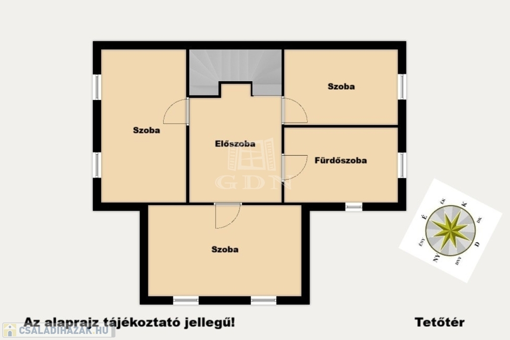 - Emelet: 3 Szoba, Fürdő + WC, Közlekedő