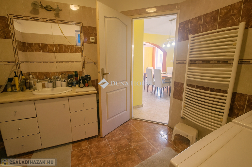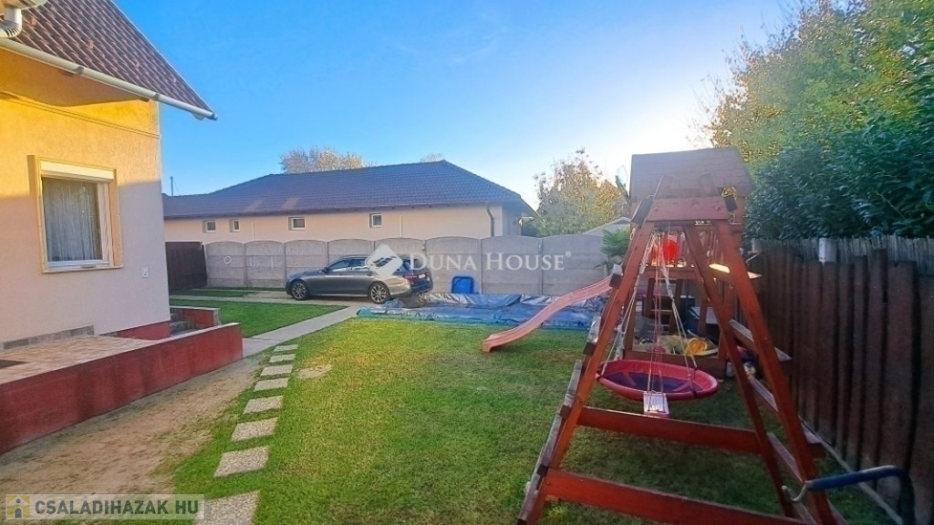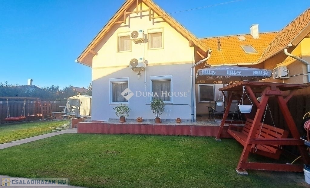 Megvételre kínálok Üllőn egy Nappali+ 4 szobás, Duplakomfortos Ikerházat rendezett szép udvarral és Medencével, csendes környékenAz ingatlan főbb jellemzői: - Építés éve: 2007- Szerkezete: Tégla- Szigetelés: 10 cm- Hasznos alapterület: 122 nm + 18 nm terasz + - Telek mérete: 470 nm , Összközműves, szorgalmi útról megközelíthető- Fűtése: Turbo Gázkazán, Padlófűtés mindenhol, a szobákban pedig radiátorok vannak.- Földszinten (Nappaliban) 5 kw-os Hűtő-fűtő klíma- Emeleten ( 3 db szobánként 1 db) 3,5 kw-os Hűtő-fűtő klíma- Műanyag nyílászárók szúnyoghálóval és redőnnyelElrendezése: - Földszint: Nappali, Szoba, Előszoba, Étkező, Konyha, Fürdőszoba, Wc, Kamra, Terasz - Emelet: 3 db Szoba, Fürdőszoba+ Wc, KözlekedőA ház elhelyezkedése és kialakítása kiválóan alkalmas nagycsaládosok számára is.Jól átgondolt és kivitelezett, tágas életterek állnak rendelkezésre, szintenként 1-1 Fürdőszobával és illemhelységgel.Elektromos kapun jutunk be az udvarra, ami applikáción keresztül és távirányítóval is vezérelhető, nyitható.Az udvaron található:- 7mx3,5m-es gépesített medence, amely 1,5 m mély, 9 kw-os hűtő-fűtő hőszivattyúval biztosítja a kellemes hőmérsékletet, a hangulatot pedig led világítás biztosítja- játszótér- sütügető- 3x5 méteres mobilgarázsA vételár részét képezi:- mobilgarázs- az emeleten lévő gardróbszekrény a közlekedőben- az emeleti szobában található fél éve vásárolt franciaágy Ez az ingatlan valóban különleges és tökéletes választás mindazok számára, Akik jól átgondolt és felszerelt, tágas, világos tereket keresnek.Amennyiben az ingatlan felkeltette az érdeklődését keressen bizalommal a hét bármely napján.Jöjjön el, nézzük meg együtt.