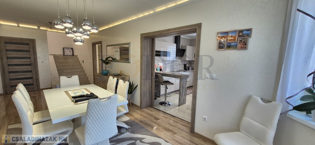 Üllő gyönyörű Dóra Liget-lakóparkjában most eladó egy varázslatos, mediterrán stílusú otthon, amely nem csupán ház – ez egy élettér, amelyben minden nap egy új kaland kezdődik. Ez a 320 m²-es, kétszintes otthon a gondos tervezés és a minőség tökéletes harmóniájával épült 2019-ben. Porotherm téglából készült, 10 cm-es hőszigeteléssel és Bramach cseréptetővel. Az ingatlan hőérzete egész évben ideális: a 16 kW-os hőszivattyú, a mennyezet-, fal hűtés-fűtés és padlófűtés külön termosztátokkal szobánként garantálja a maximális kényelmet. A lépcsőházban található 5 kW-os inverteres klíma (Fischer) még inkább fokozza a kényelmet. Ráadásul a kiépített 20 kW-s napelem rendszer (Szaldós) nemcsak nyáron biztosítja a hűtést, hanem télen a fűtés költségeit is jelentősen csökkenti!