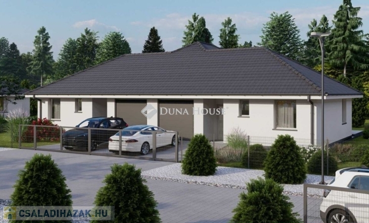 Kialakítása: 2 szoba, nappali, konyha, fürdő, külön wc, előtér, közlekedő, 19 m2 terasz, garázs.