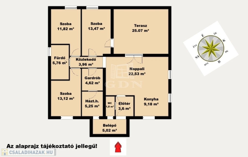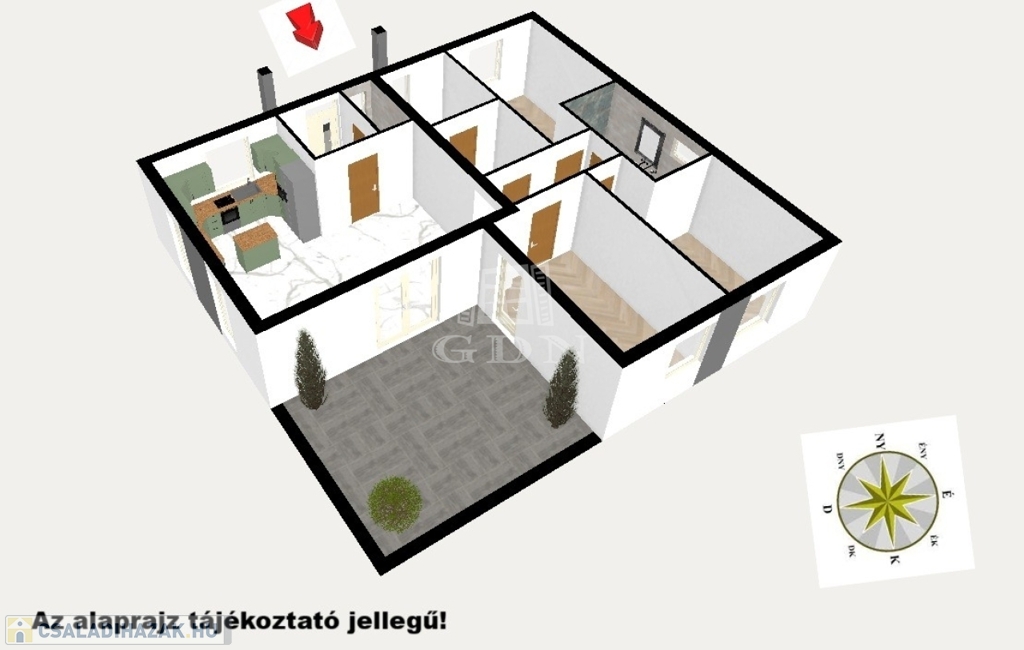 A nagyméretű AMERIKAI KONYHÁS NAPPALI mellett három különálló szoba is megtalálható.