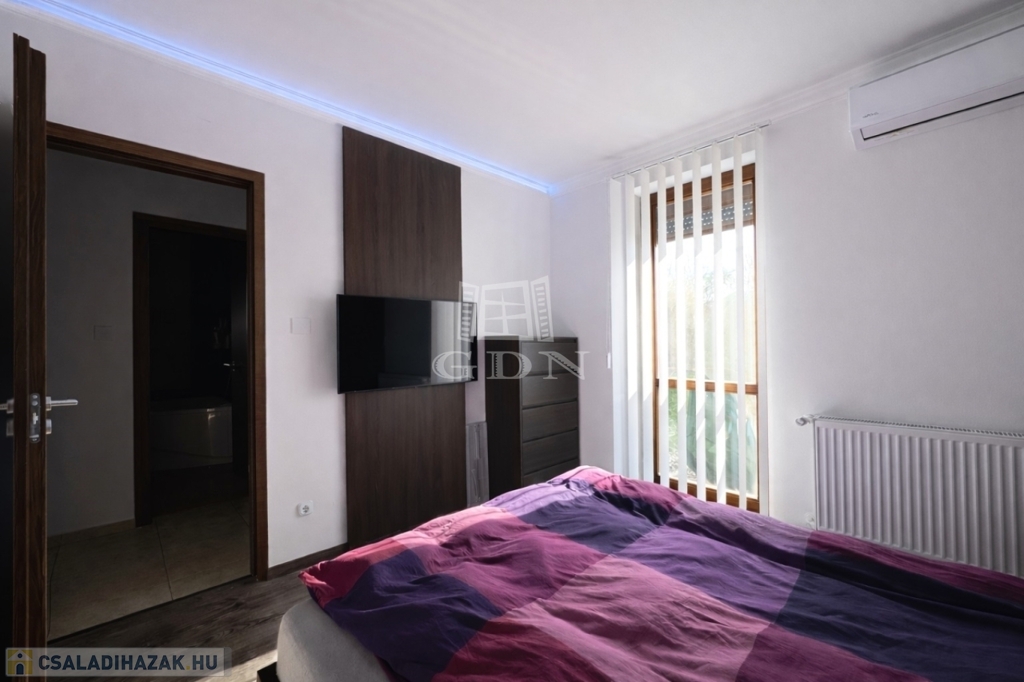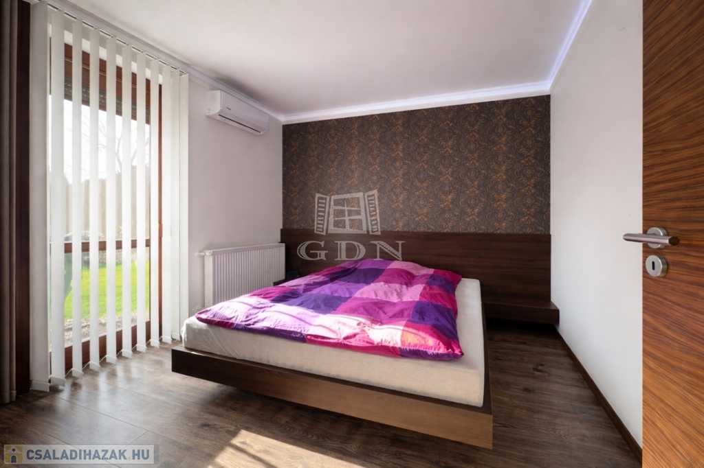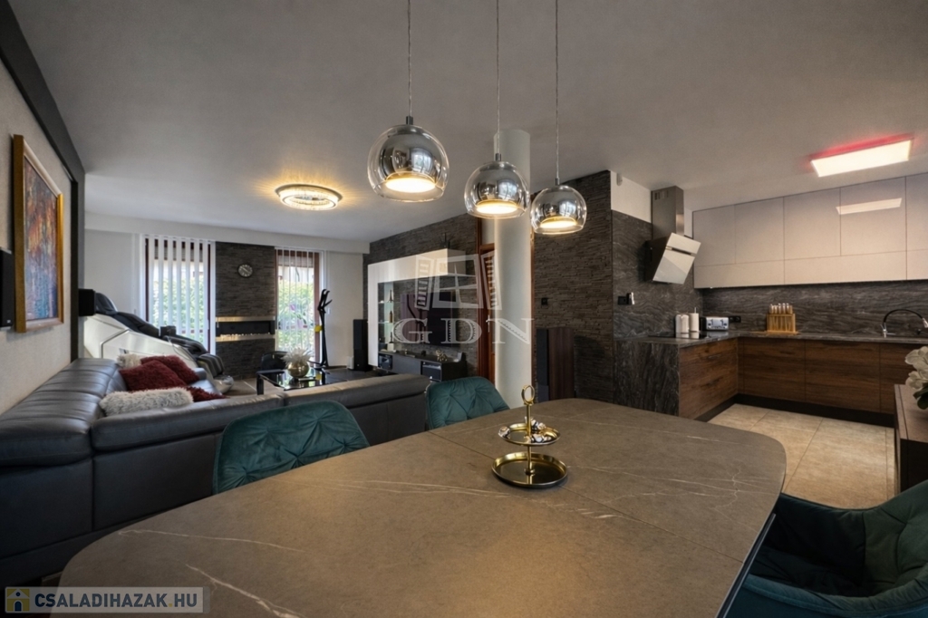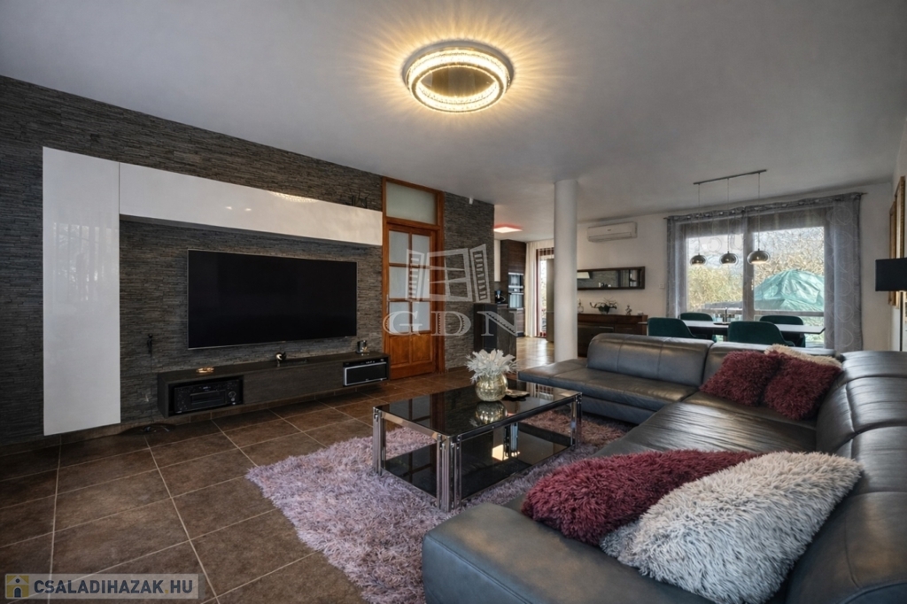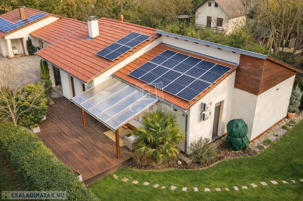 Vh-00 Úrhidán, az Arany János utcában, lakóparki környezetben eladó egy újszerű állapotú, nappali + 3 hálószobás, összesen 144 m² -es lakóingatlan, amely 860 m² nagyságú,- önálló használatú telekrésszel, kétállásos gépkocsitárolóval, napelemes rendszerrel, valamint magas felszereltséggel rendelkezik.