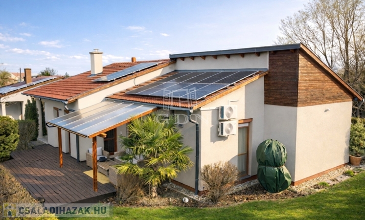 Az ingatlanon 5 kW teljesítményű napelemes rendszer működik, amely 5 évvel ezelőtt került üzembe helyezésre. Az elektromos hálózat 3×20 A kapacitású. Vízlágyító berendezés telepítéséhez szükséges gépészeti előkészítés rendelkezésre áll.
