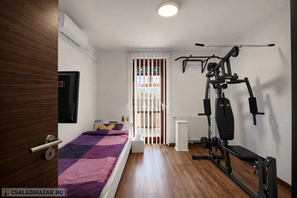 A nappaliban, valamint mindhárom hálószobában önálló hűtő-fűtő, split klímaberendezés került telepítésre.