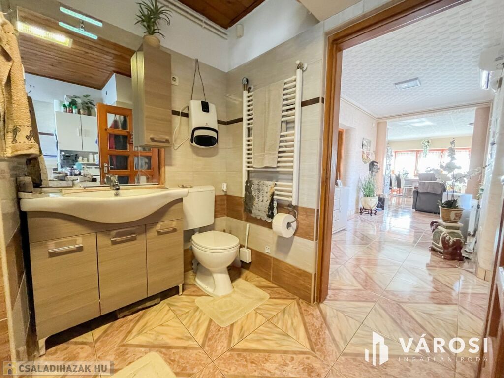 A tetőtér lehetőséget biztosít a ház hasznos alapterületének a bővítésére(fafödém van a földszint felett), akár külső lépcsőn(kialakítható) keresztül is megközelíthető többgenerációs család esetén.