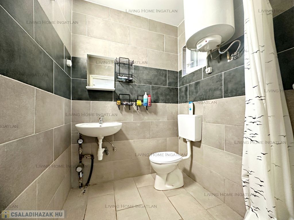 A második, hátsó ház 57 nm-es, külön bejáratú, teraszkapcsolatos.