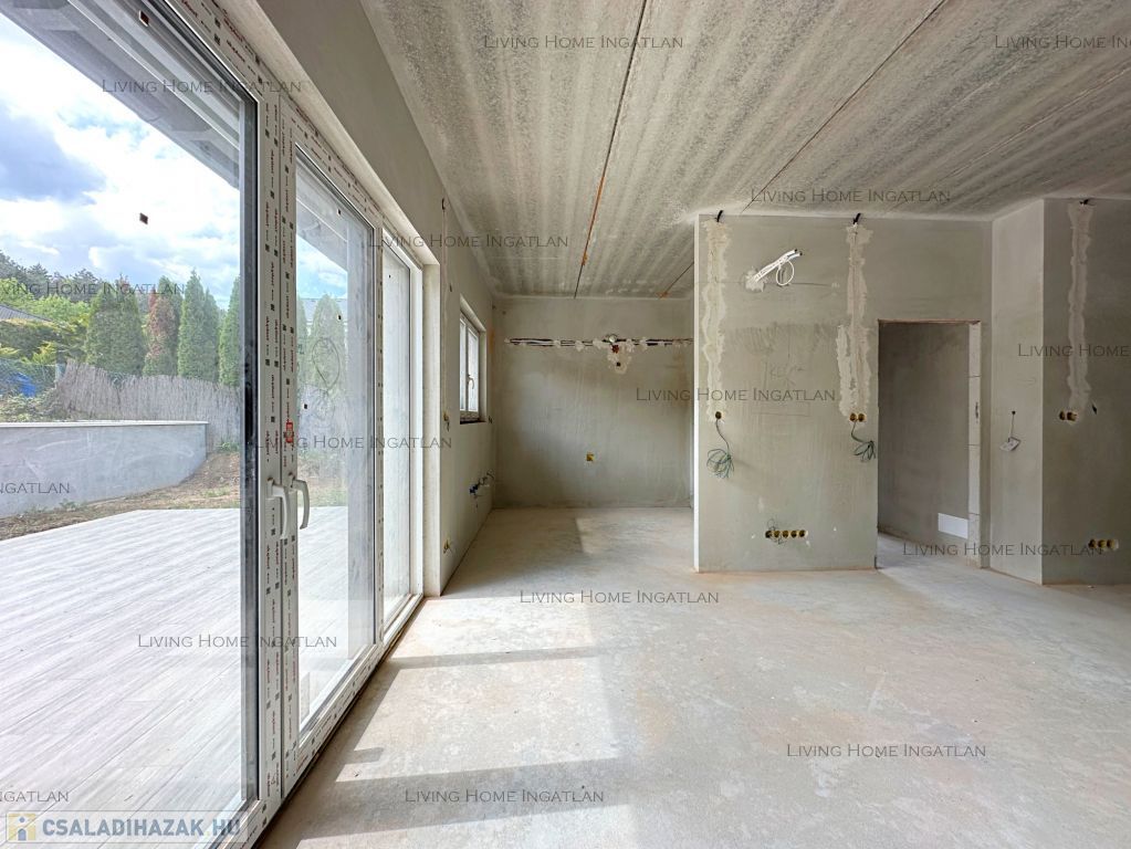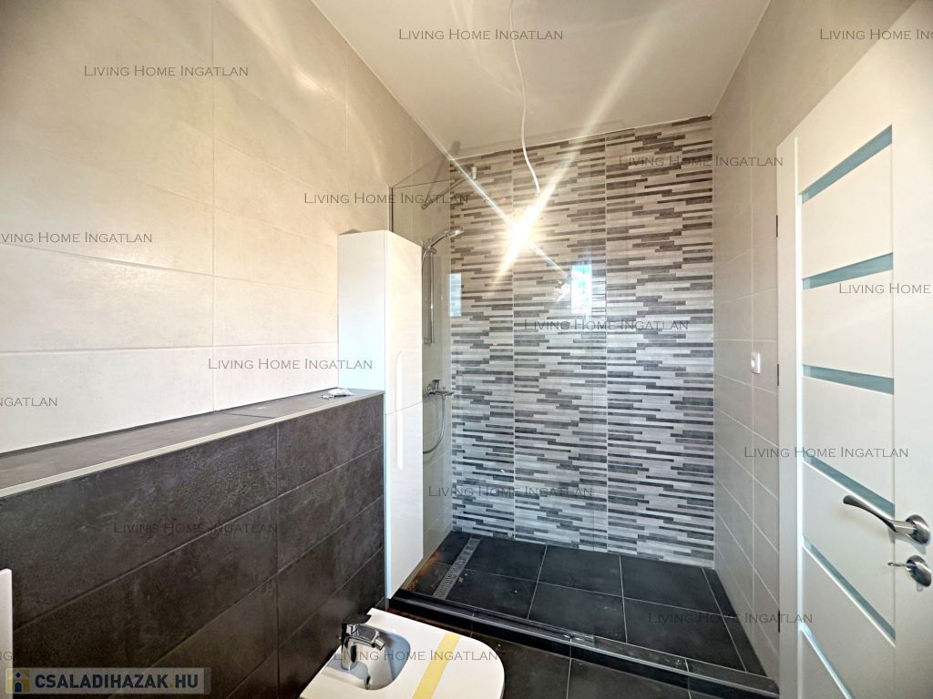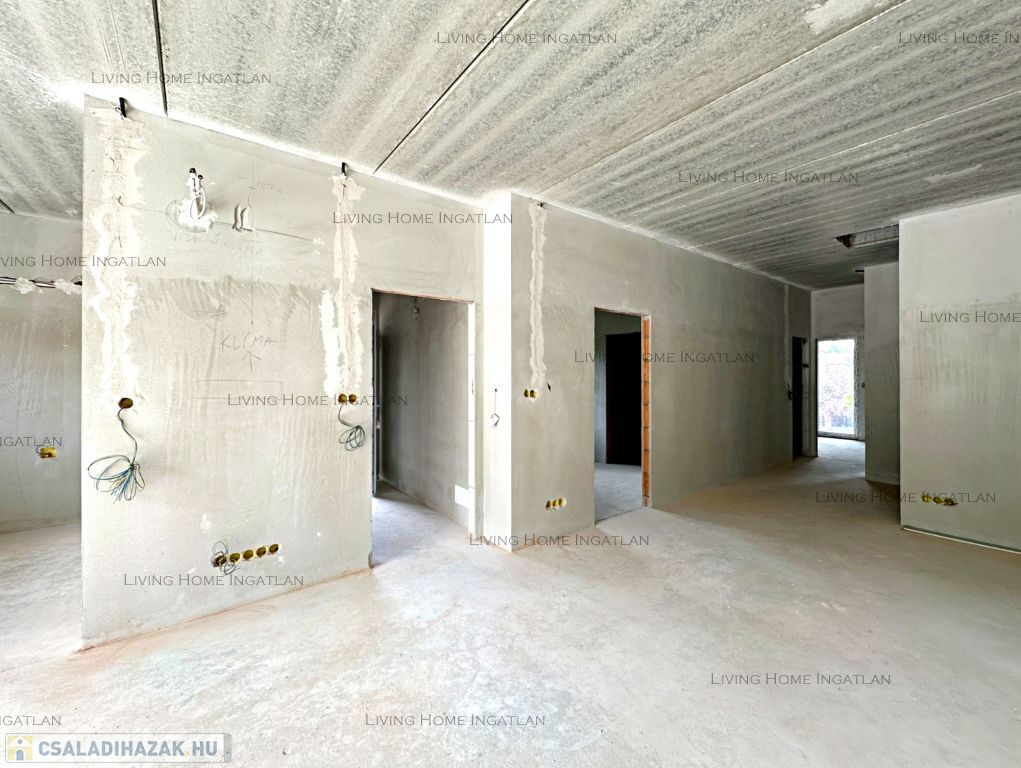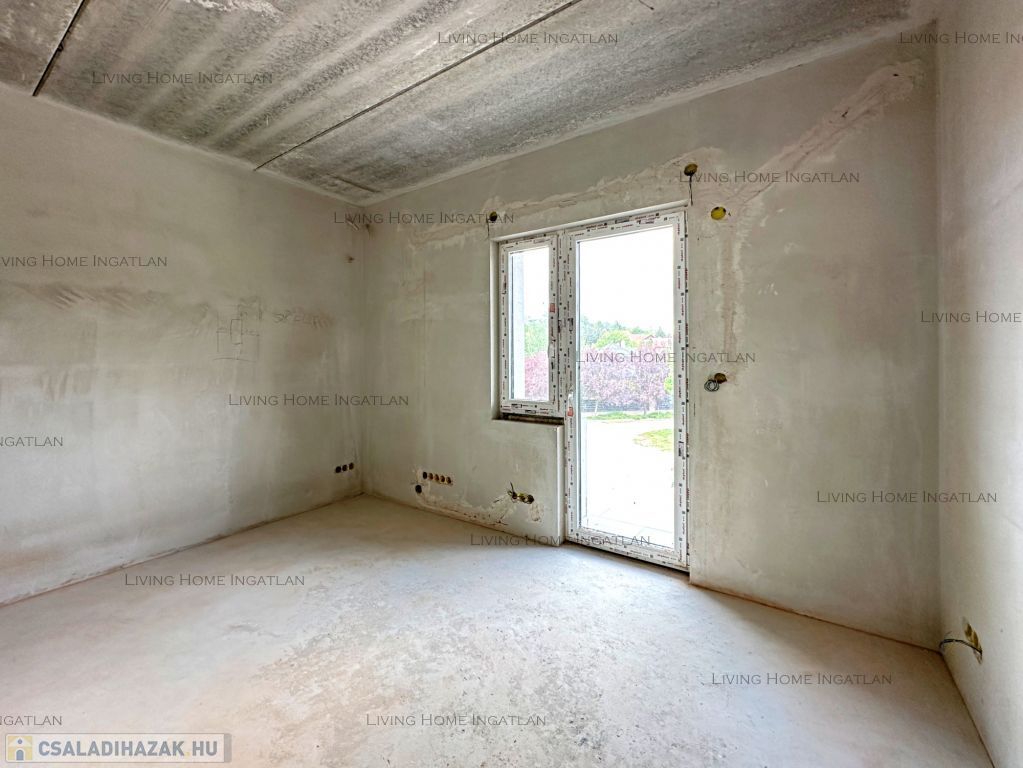 Az ikerfél 154 nm-es, duplakomfortos, 434 nm-es telekkel. A tulajdonos a ház mindkét felét saját részre kezdte építeni. Minőségi anyagok, átgondolt alaprajz, tágas terek jellemzik a lakásokat. A kert tereprendezése is megtörtént.