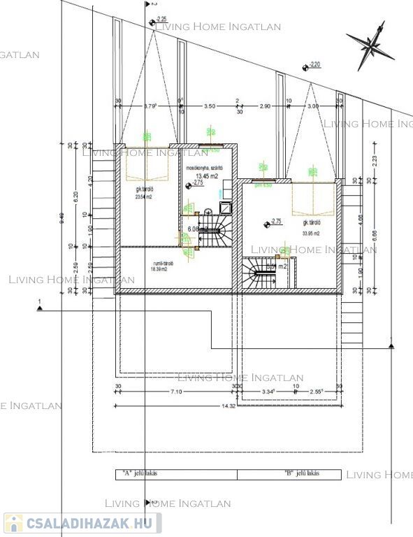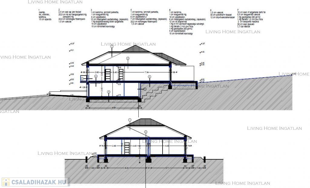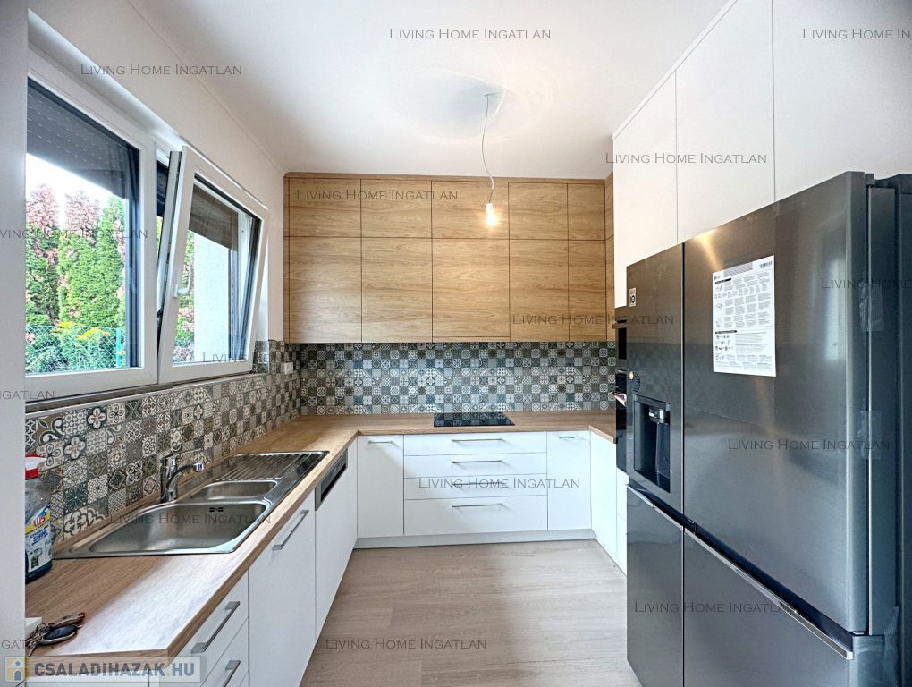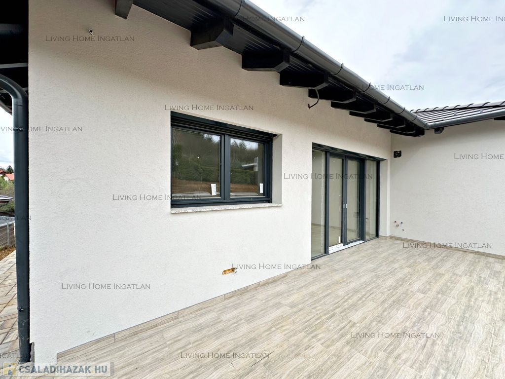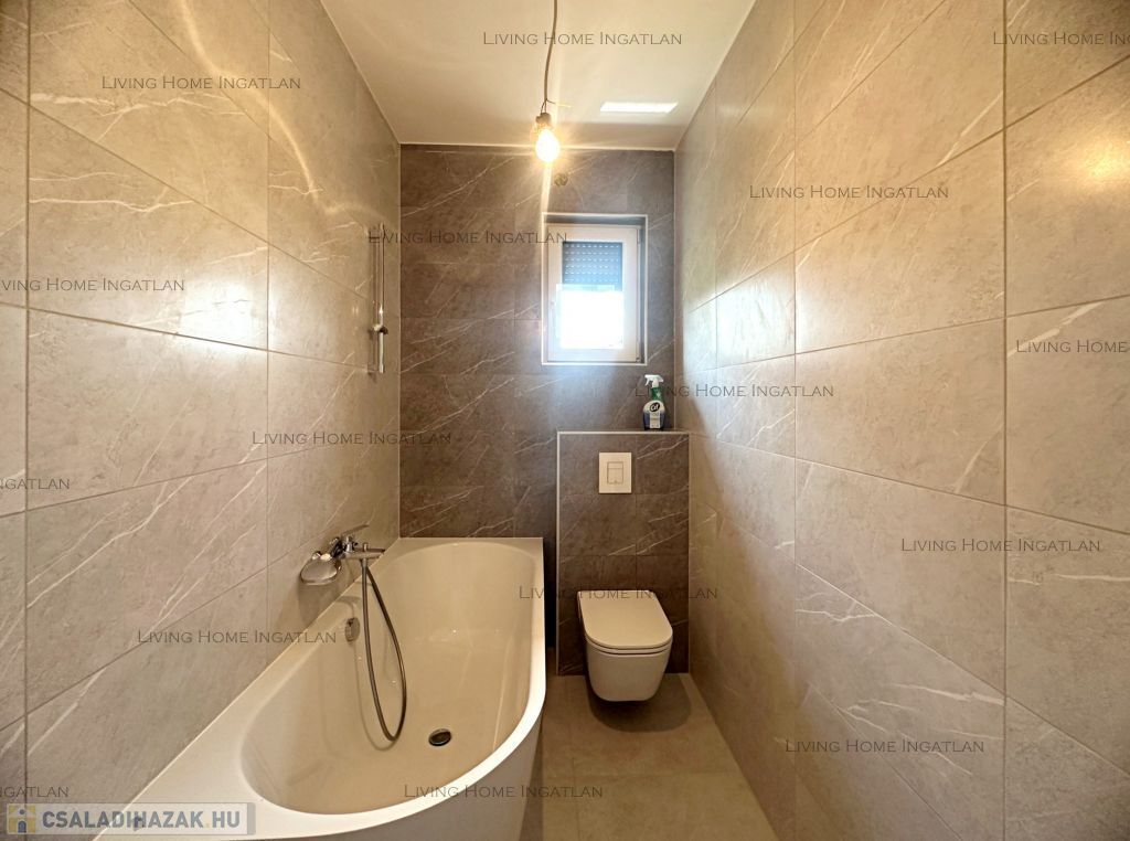 Az ikerfél 154 nm-es, duplakomfortos, 434 nm-es telekkel. A tulajdonos a ház mindkét felét saját részre kezdte építeni. Minőségi anyagok, átgondolt alaprajz, tágas terek jellemzik a lakásokat. A kert tereprendezése is megtörtént.