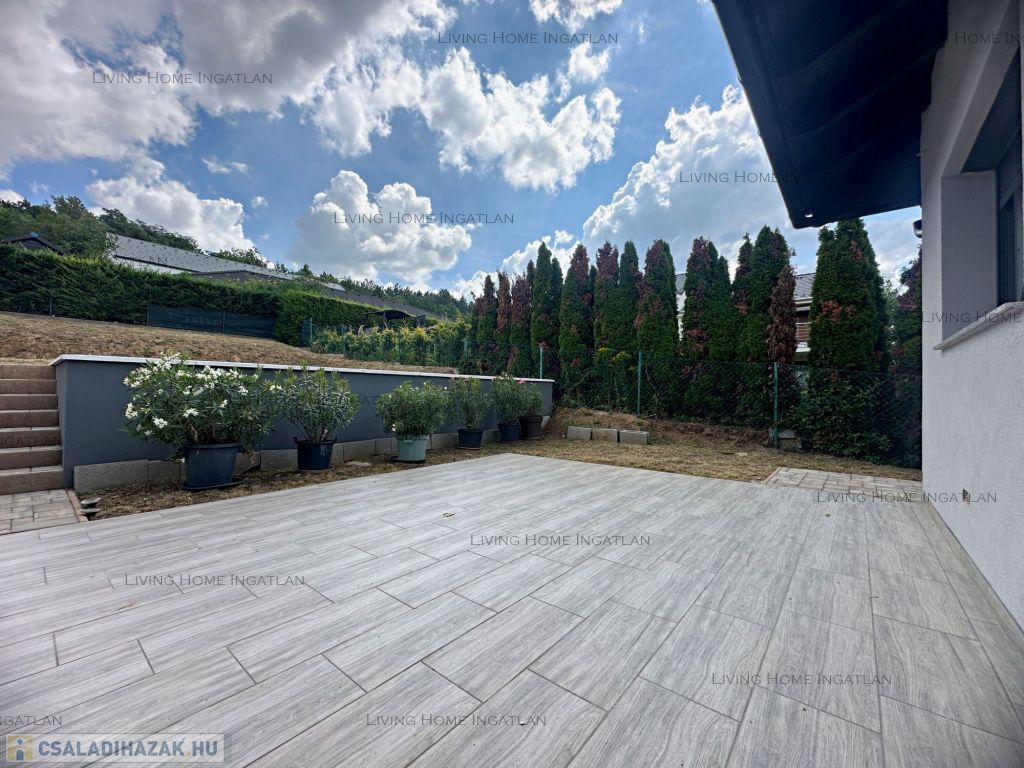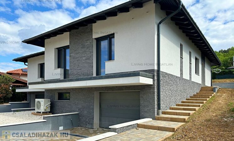 The basement level has a one-stall garage for the smaller one and a two-stall garage for the larger one with other storage rooms, boiler room. On the first floor of both apartments there are spacious living rooms with American kitchen and terrace and garden. The smaller apartment has 2 bedrooms with two bathrooms, but a third room can easily be added. The larger apartment has 3 bedrooms with 2 bathrooms. The rooms have a balcony with a beautiful panoramic view of the Pilis. The attic is suitable for additional storage.