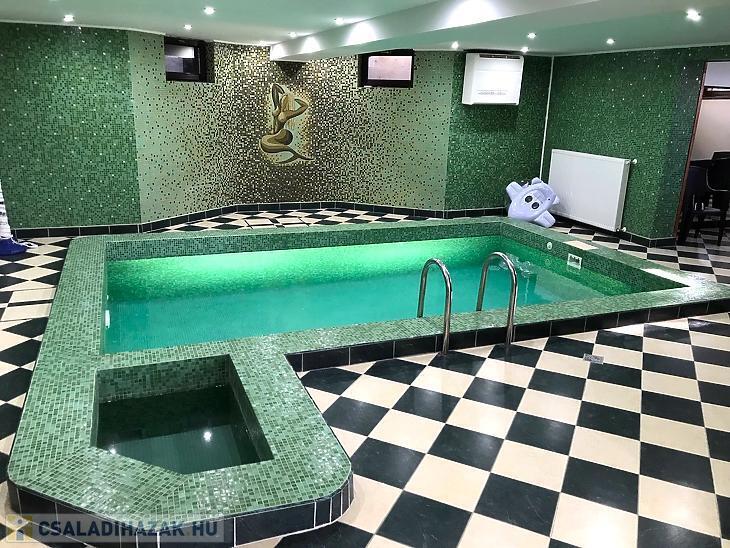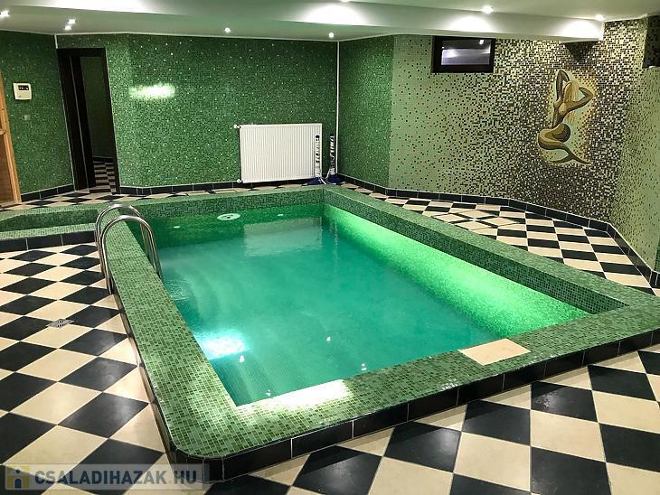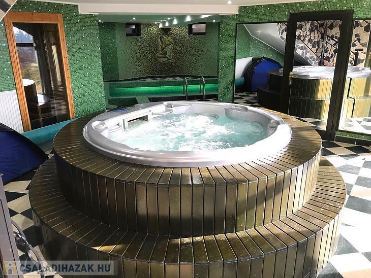 - Az alsó szinten kialakításra került egy nagy méretű garázs, amely 2-3 autónak biztosít beállási lehetőséget. Ezenkívül plusz Wellness részleg is van, ami minden igényt kielégíthet. - Medence, konditerem, fürdőszoba, mosókonyha, 6 fős szauna és egy 5 fős jakuzzi is.