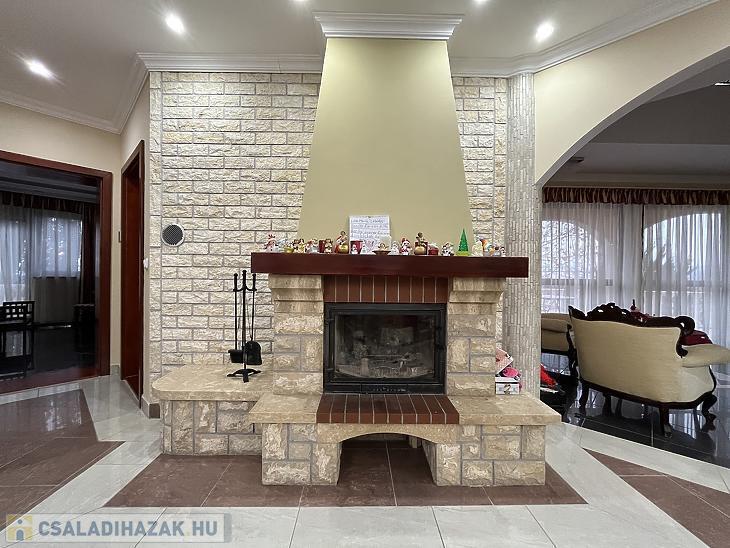 - A fűtésért egy 2 x 20 kw-s hőszivattyú gondoskodik, minden helyiségben radiátorokkal és inverteres klímákkal. Plusz a nappaliban helyet kapott egy hangulatos kandalló.