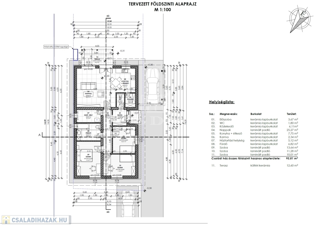 Vácon, a csendes és jól megközelíthető Ösvény utcában kínálunk eladásra egy 502 m²-es telken épülő új, kulcsrakész önálló családi házat, 93,81 m² nettó hasznos lakótérrel és 12,6 m²-es terasszal.