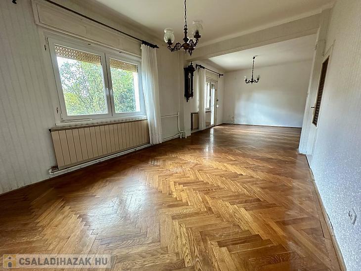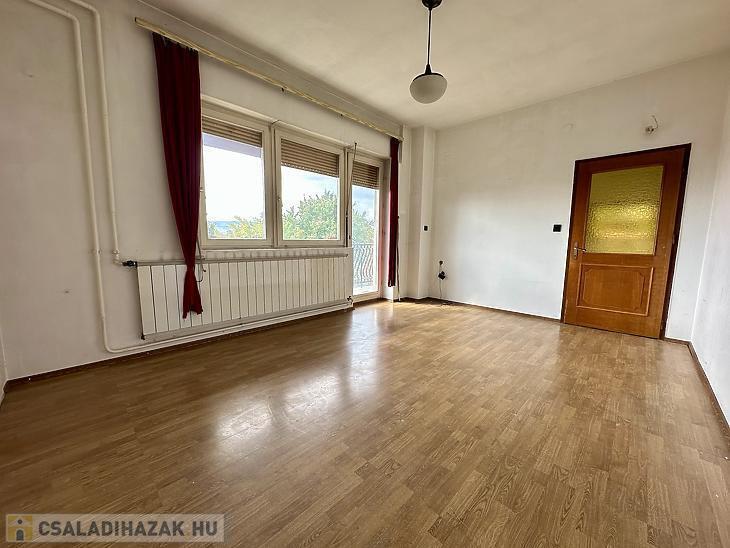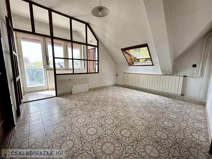 A felső szint szintén külön bejárattal rendelkezik, elosztása: előszoba, nappali, három hálószoba, konyha, fürdőszoba, külön WC, valamint egy erkély. Itt dupla üvegezésű fatokos ablakok találhatók.