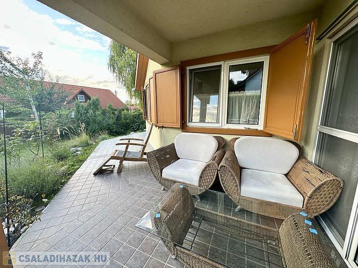 A házhoz két terasz is kapcsolódik, melyek közül az egyik fedett – kiváló helyszínt biztosít a kellemes nyári estéken való pihenéshez vagy baráti összejövetelekhez.