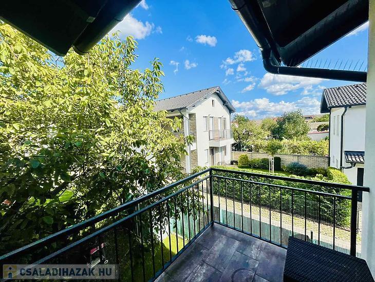 Az ingatlan 3 hálószobával, tágas nappalival és konyhával, földszinti és emeleti terasszal, elektromos kapuval ellátott fűtött garázzsal rendelkezik.