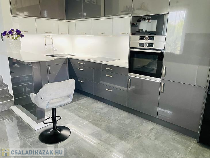 Egy kiváló elrendezésű, 117 m² -es ikerházfél a város egyik legcsendesebb, családbarát utcájában, 500 m²-es saját telekrésszel. Az ingatlan különlegessége a gyönyörű panoráma a Naszály hegyre.