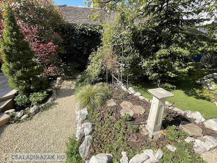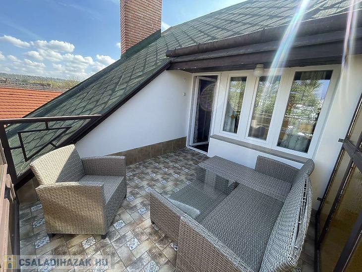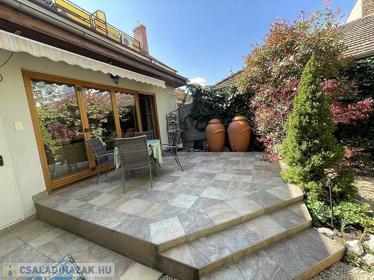 A házhoz tartozik egy kb. 100 nm-es, gondozott kert öntözőrendszerrel, egy 14nm-es garázs, illetve extraként egy infra szauna. A földszinten egy 20 nm-es terasz, a második emeleten egy 7 nm-es erkély, míg a harmadik szinten egy 9 nm-es panorámás terasz biztosít kellemes kikapcsolódási lehetőséget és szép kilátást.