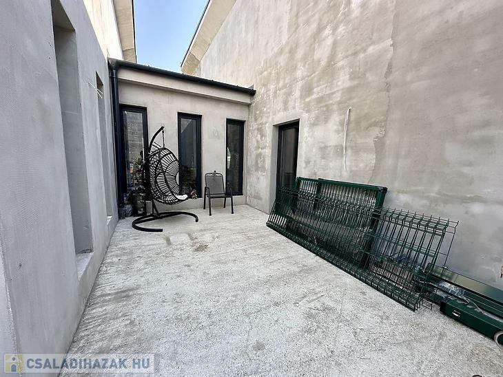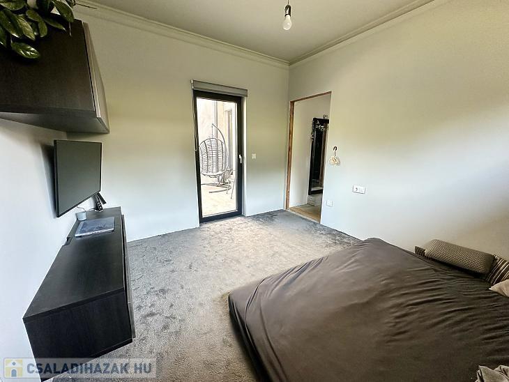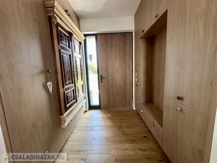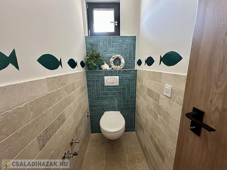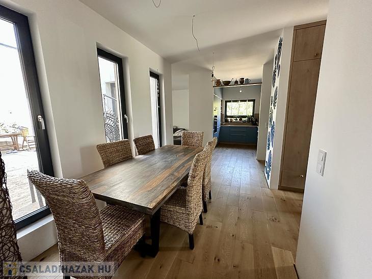 A belső elrendezés rendkívül praktikus: előszoba, étkező, konyha, tágas nappali, három hálószoba, mosókonyha, egy fürdőszoba WC-vel, valamint egy fürdőszoba és egy különálló WC is megtalálható benne. A nappaliból közvetlen kijárat nyílik a 48 nm-es teraszra, amely ideális helyszíne lehet a családi és baráti összejöveteleknek. A ház nagy része már elkészült, azonban néhány kisebb befejezendő munkálat lehetőséget ad arra, hogy az új tulajdonos saját igényei és ízlése szerint alakíthassa ki az otthonát. A délkeleti tájolásnak köszönhetően a ház egész nap világos, napfényes tereket kínál, ami tovább növeli az otthonos hangulatot.