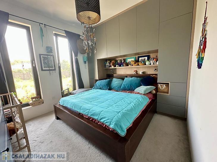 Eladó Vác Déli lakóparkjában egy 93 nm-es, modern technológiával épült családi ház, amelyhez tartozik egy 63 nm-es garázs szerelőaknával – ideális választás lehet mindazok számára, akik tágas otthont keresnek nyugodt környezetben, ugyanakkor értékelik a praktikus megoldásokat is. A ház OSB SIP panelből készült, 15 cm-es kőzetgyapot szigeteléssel, ami kiváló hőszigetelést és energiatakarékos működést biztosít. A fűtésről villanykazán gondoskodik padlófűtéssel, a nyílászárók pedig tripla üvegezésű thermo műanyag ablakok, melyek tovább növelik a komfortérzetet.