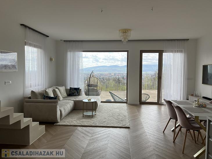 Vácon, Törökhegyen kínáljuk megvételre ezt a modern, örökpanorámás okosotthont, amely a kényelmet, az energiatakarékosságot és a prémium életérzést ötvözi. Az ingatlan minden fontos rendszere telefonról vezérelhető: a fűtés és hűtés, a világítás, a riasztó, valamint a beépített víztisztító és vízlágyító rendszer is, így a mindennapok maximális komforttal és biztonsággal telnek.
