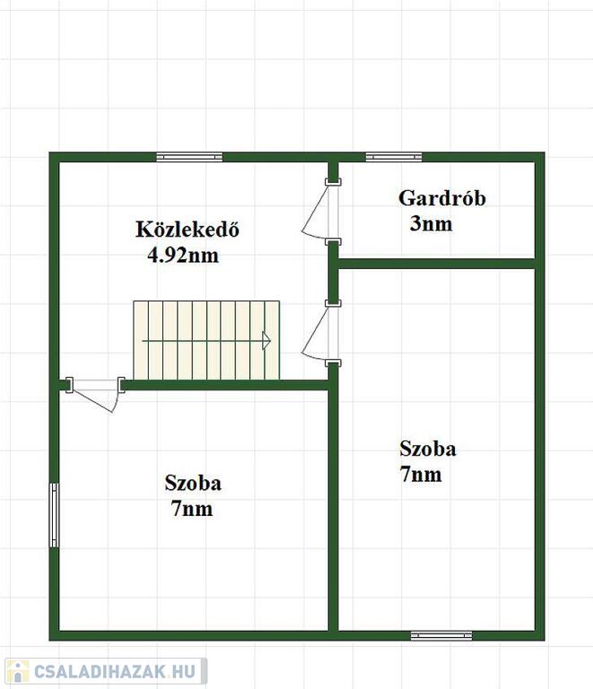 Emelet: közlekedő, 2 hálószoba, gardróbszoba