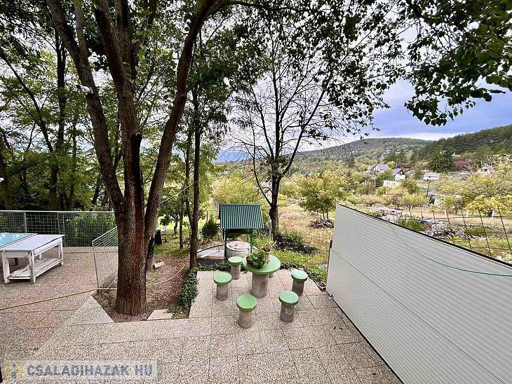 Az igazi különlegességet azonban a közel 70 m²-es panorámás terasz és a csodás, közel 2000 m²-es, gyümölcsfás, gondozott telek jelenti. A teraszról elénk táruló látvány minden évszakban lenyűgöző.