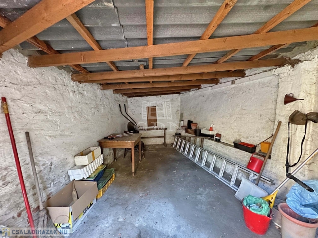 A kertben található melléképület jelenleg garázsként funkcionál, és az udvarban is lehetőség van autóval való beállásra.