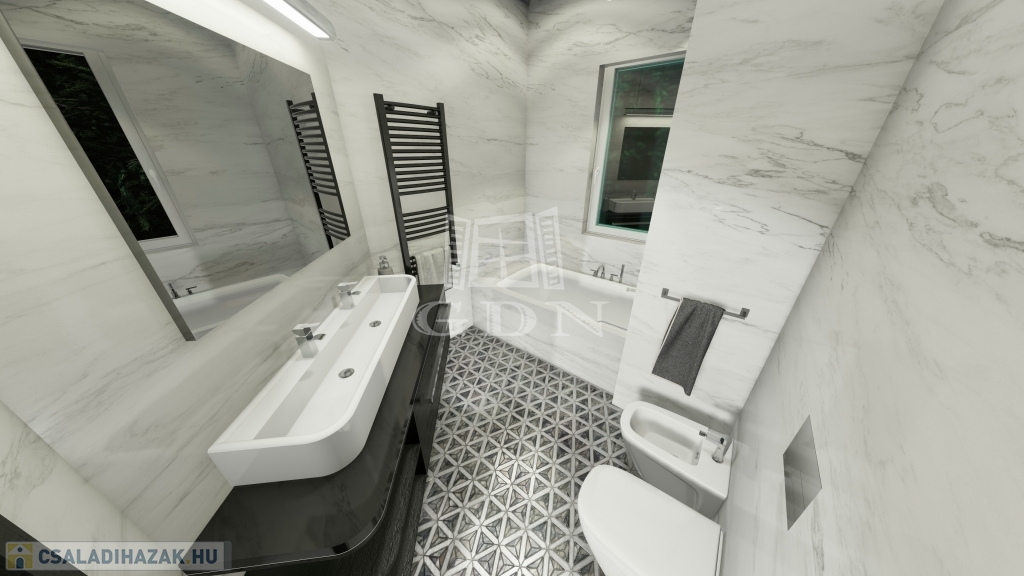 Korszerű, energiahatékony, hőszivattyús fűtés lesz kiépítve, az alacsony rezsi eléréshez, így nem lesz szükség gázra a házban, tehát a gázszámlát már meg is spóroltuk.
