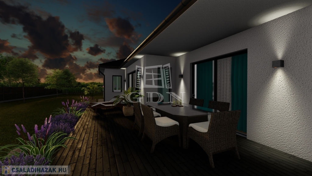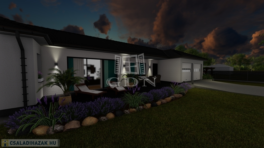 Jelen tervek szerint lakás alapterülete 151,33 m2 + 36 m2-es garázs + 43 m2-es terasz.