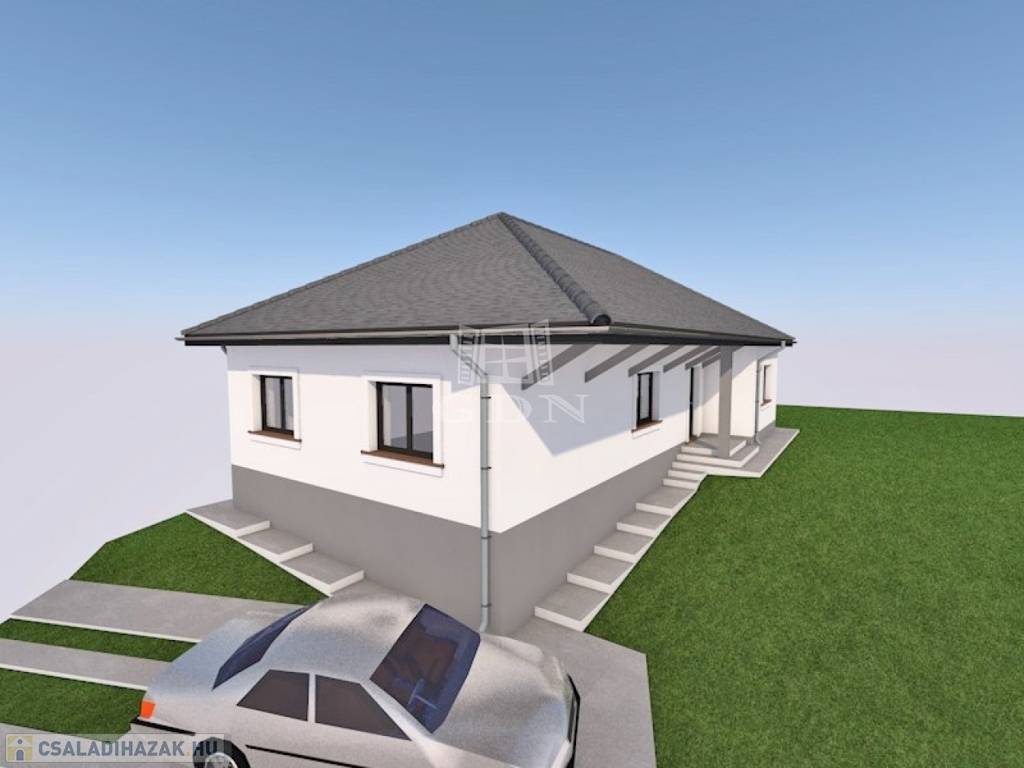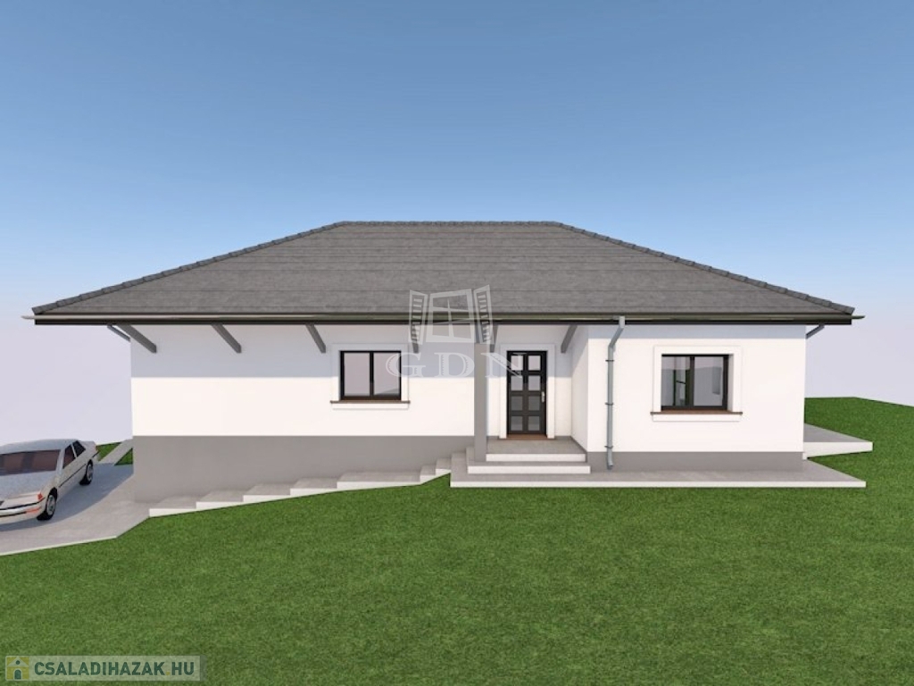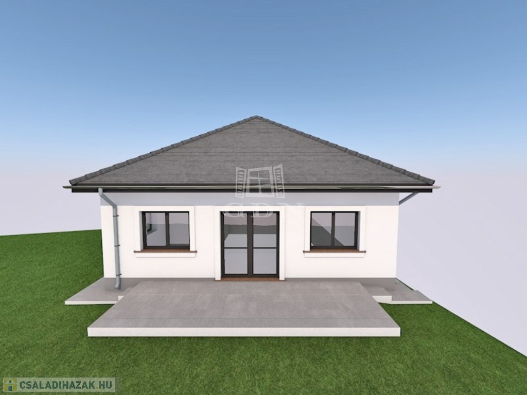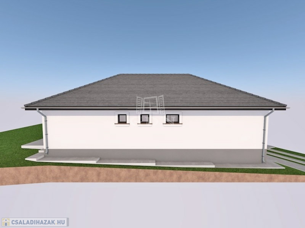 Valkón a Vörösmarty utcában 1076 m²-es telken, eladó egy 30-as Porotherm P30 N+F falazóelemből épülő, új építésű, nettó 93,43 m²-es, közel nulla energia igényű, betoncseréppel fedett kulcsrakész családi ház.