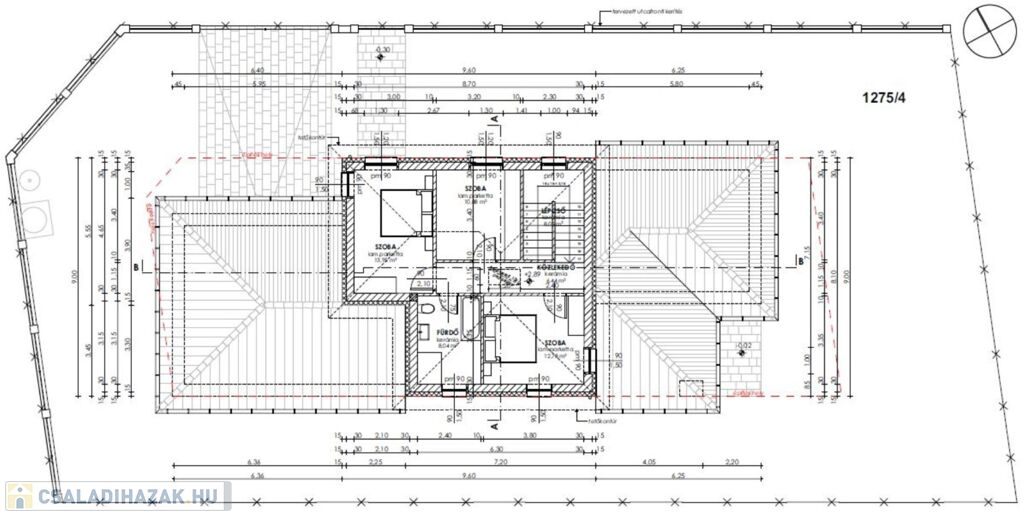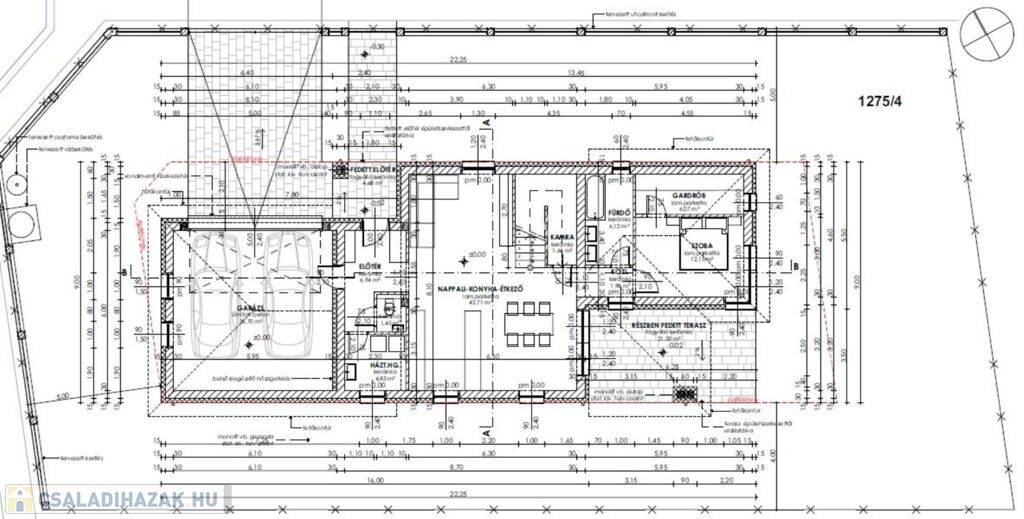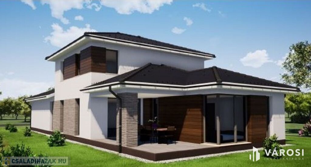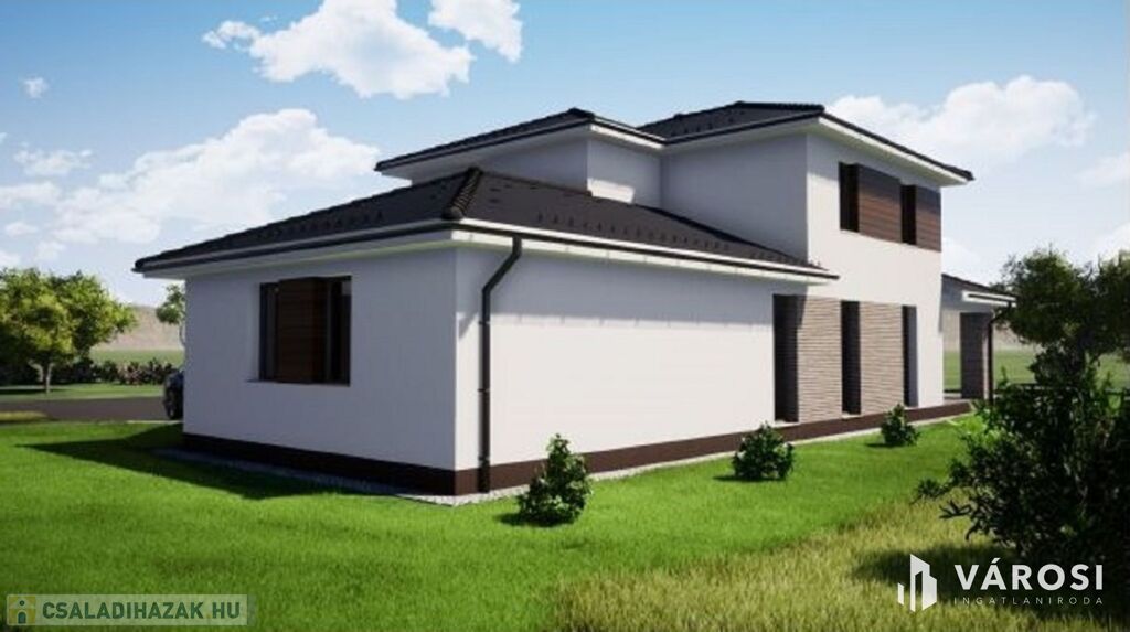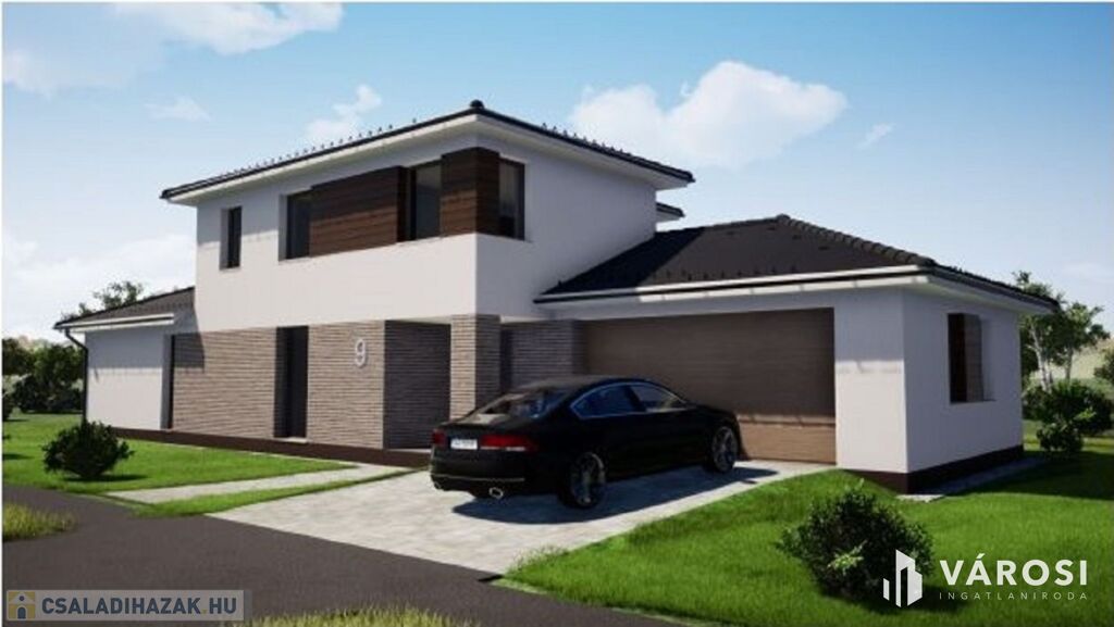 Az ingatlan egy 642m2 alapterületű saroktelken épül, garázzsal együtt két szinten összesen ~180nm alapterülettel.