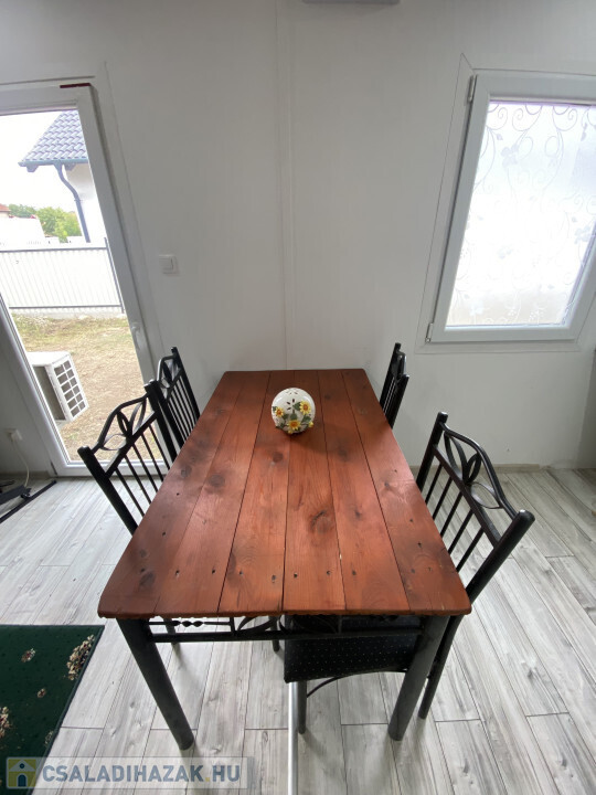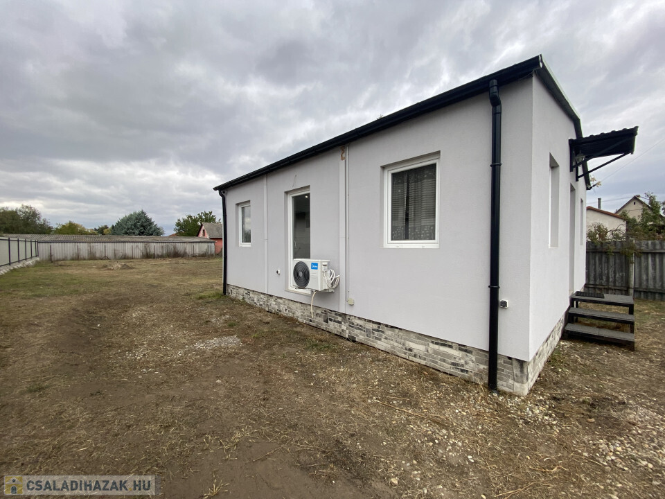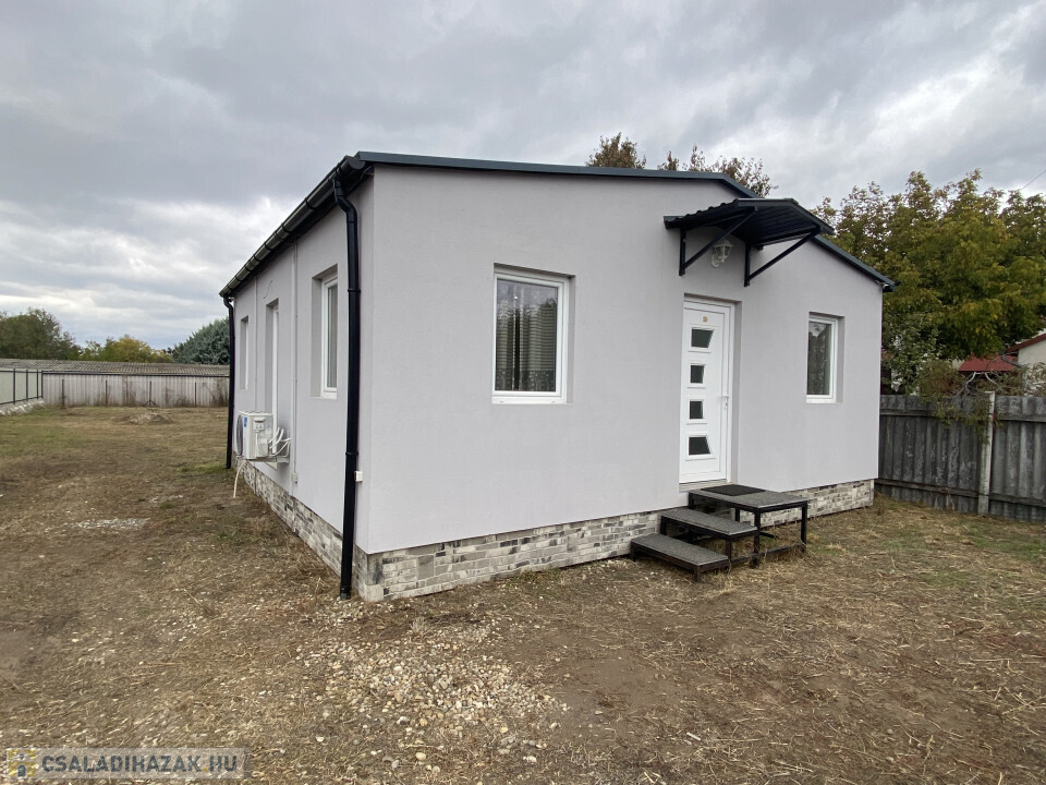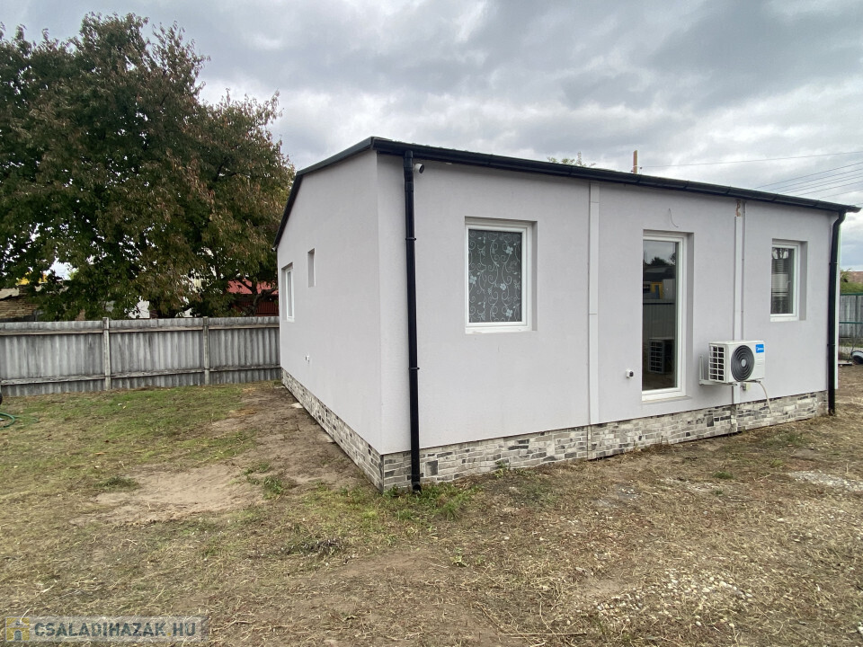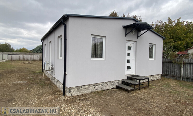 Az épület teljesen újszerű állapotú, 2 szoba + nappali, konyha-étkező, fürdőszoba található benne, víz, villany közművekkel felszerelt, zárt tartályos emésztővel, fúrt kúttal a kertben.