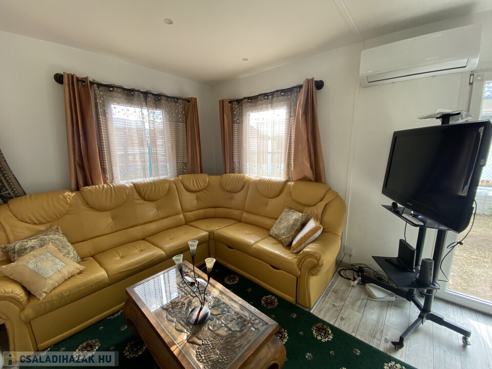Monortól néhány km-re, Vasadon, belterületen, lakóházas övezetben eladó egy azonnal költözhető, szigetelt, klimatizált, könnyűszerkezetes mobilház 600 m2 telekkel.