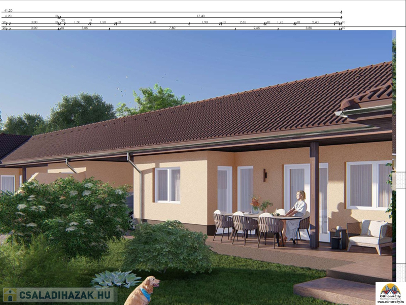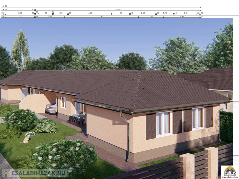 Az ingatlanok között fedett autóbeálló épül, így nincs közös fal, garantálva a teljes privát szférát és zajmentes életteret.