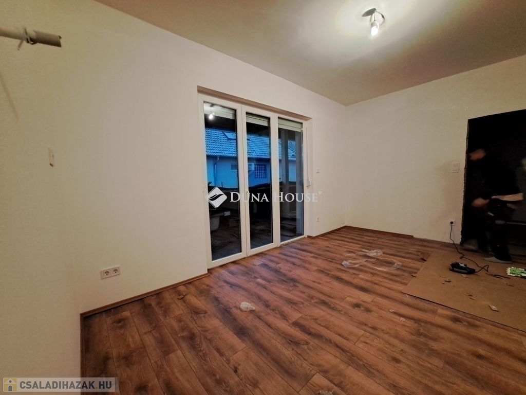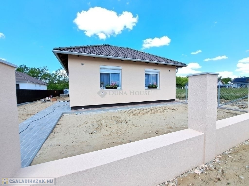 Eladó modern utcafronti ikerházfél Vasadon!Kiváló elrendezés, prémium műszaki tartalom, kényelmes és tágas életterek mindez egy modern házban, amely tökéletes választás családok és párok számára egyaránt.Az ingatlan a következőkkel várja leendő tulajdonosát:- Nappaliból és a szobákból is megközelíthető terasz- 267 nm-es saját, körbekerített kert- szolgalmi út a saját, fedett parkolóigLakás elrendezése:- Az előszobából egy tágas közlekedőbe érkezhetünk, ahonnan két szoba és egy fürdőszoba nyílik.- A gépészeti helyiség is közvetlenül az előszobából elérhető.- A konyhaétkező és nappali világos, tágas tér, a nappaliból egy további szoba, saját fürdővel és gardróbbal, valamint közvetlen kijárattal a részben fedett teraszra.- A teraszra mind a nappaliból, mind a hálószobából kijuthatunk, így a lakás belső terei könnyen kapcsolódnak a szabad térhez.A ház tervezett átadása: 2026.nyár., folyamatos átadással készülnek a házak. Referenciaházak megtekinthetőek!Műszaki adatok és jellemzők:- Falazat: porotherm 30, válaszfalak ytong 10- Alapozás: vasbeton sávalap- Tető: barna cserép (Bramac, Leier)- Fűtés/hűtés: hőszivattyús vízteres padlófűtési rendszer (7/9 kW), 100 literes Hybrid bojler, 3,5 kW hűtő-fűtő klíma a nappaliban- Nyílászárók: 5 légkamrás műanyag ablakok 3 rétegű üvegezéssel, redőnnyel ellátva- Szigetelés: 10 cm Graffitos homlokzati szigetelés, 12 cm púrhabos mennyezeti szigetelés, 12 cm EPS aljzatszigetelés- Külső és belső burkolatok: választható hideg- és melegburkolatok, fagyálló teraszburkolat- Terasz: külső világítás előkészítése, fagyálló kerámia burkolás választható- Belső ajtók és csaptelepek: egyedi igényeknek megfelelően választhatók- Kerítés: utcafronti, vízszintes deszkázatú, elektromos kapu kiállással, oldalsó és hátsó drótkerítésselA ház körül 0,4 m betonjárda található, autóbeállóval, illetve igény szerinti kialakítással. Az infrastruktúra kiváló, könnyen megközelíthető helyen, nyugodt környezetben.Belső tervezési lehetőségek: A leendő tulajdonos egyedileg választhatja ki a burkolatokat, szanitereket és egyéb kiegészítőket, hogy a lakás teljes mértékben személyre szabott legyen.Választható burkolatok, szerelvények:- Hideg-melegburkolatok választhatók- Csaptelepek: falba szerelhető geberit wc-k, csaptelepek a mosdóknál , kerámia mosdó, épített zuhanynál csaptelep- Belső ajtók: + kilincs- Terasz: külső világítás előkészítése, konnektor kiépítése 1db, fagyálló kerámiával burkolva, mely választható- A ház külső színe világos (választható)