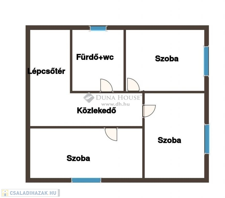 emeleten: 3 szoba, közlekedő, tágas fürdő+wc