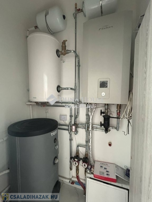 10 cm grafitos szigetelés, beton alapon 30 n+f porotherm falazat és tégla válaszfalak, klíma , tv és internet előkészítve, kaputelefon kiállás van.