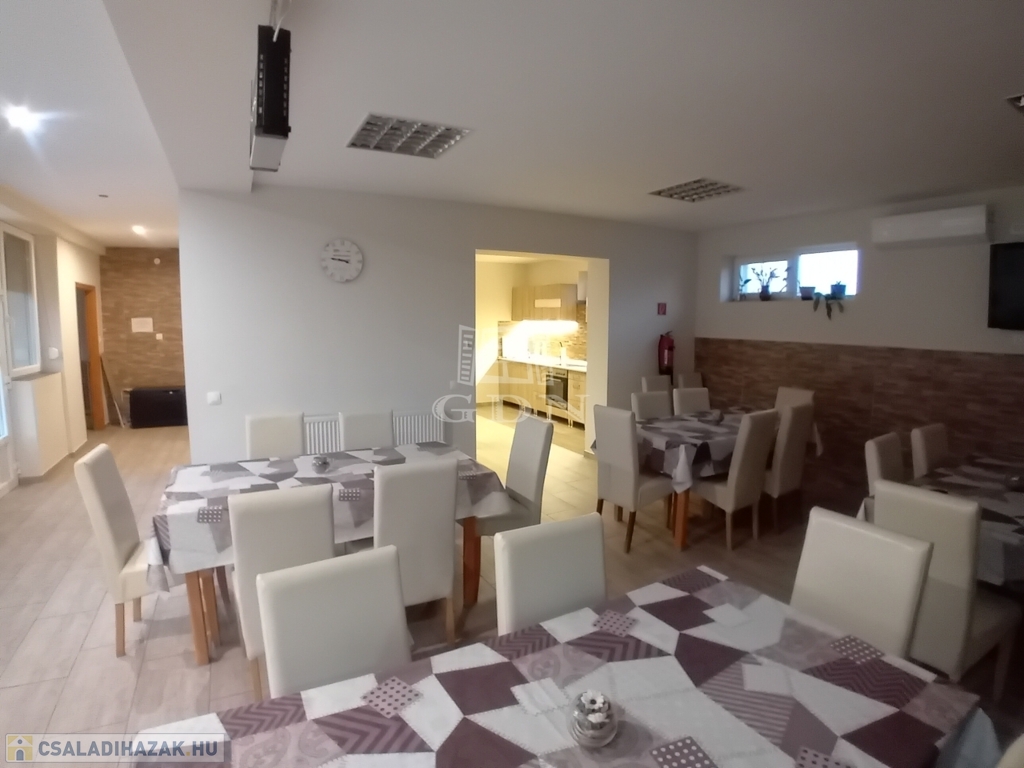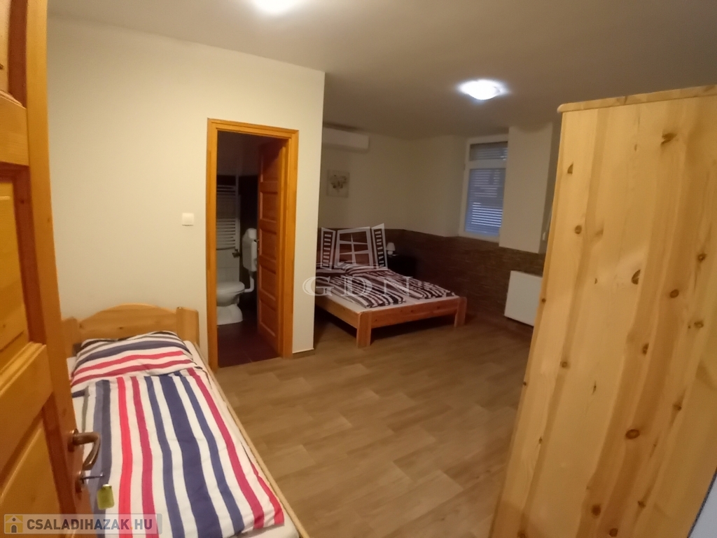 Eladó egy 16 férőhelyes, 5 hálószobás, saját fürdőszobás családi ház, amely jelenleg vendégházként üzemel. Kiváló lehetőség befektetőknek, nagycsaládosoknak vagy több generáció együttélésére!
