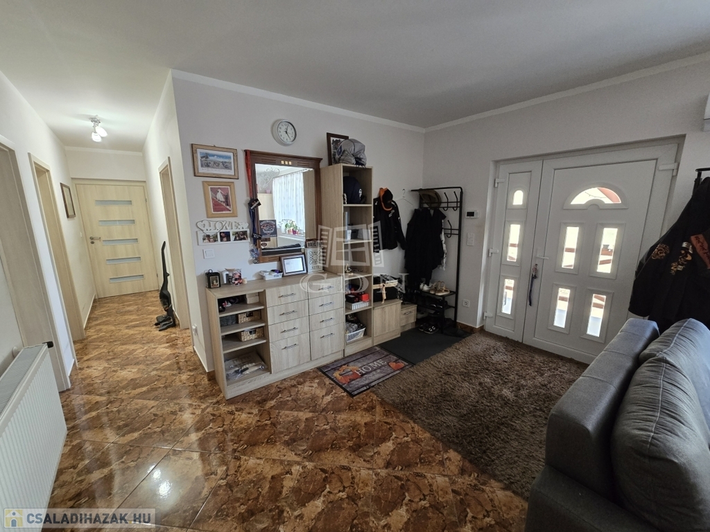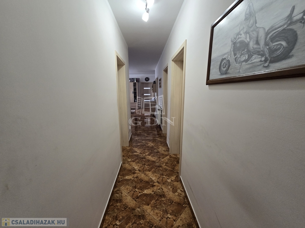 Az új építésű, kétszintes családi ház 2018-ban került újjáépítésre, korszerű blokk téglás szerkezettel, Leier és Porotherm téglákból. Az ingatlan több mint 110 m²-es, teljesen kiépített alsó szinttel rendelkezik, amely azonnal költözhető, míg a több mint 40 m²-es tetőtér beépíthető, így kiváló lehetőséget kínál egy különálló lakrész kialakítására – akár kétgenerációs otthonná is alakítható.