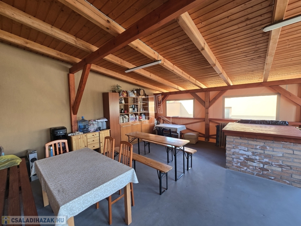 valamint egy 80 m²-es műhely az udvar hátsó részében, amely vállalkozásra, ipari célra vagy egyéni hobbira is kiválóan alkalmas.