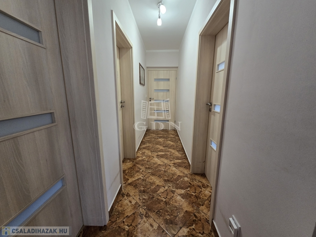 A teljes vezetékhálózat újonnan került kiépítésre: víz, áram, fűtés – mind korszerű, biztonságos megoldásokkal. Az áramellátás külön biztosítékról fut minden helyiségben, a meleg vizet villanybojler biztosítja, az ingatlan pedig teljes közművesítéssel, így csatornahálózatra csatlakozva működik. A belső belmagasság 2,65 méter, amely kellemes térérzetet ad a lakótérnek.